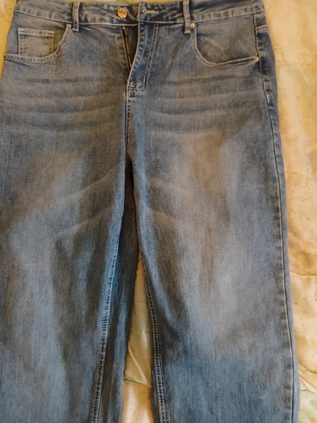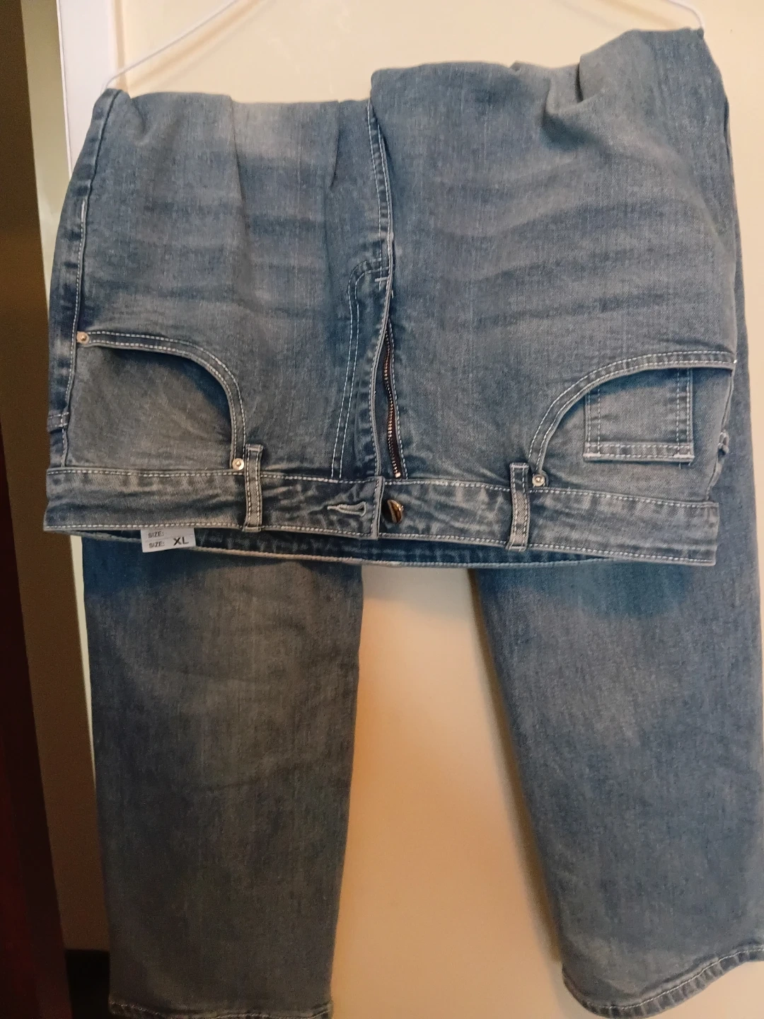 These light wash jeans are made from a polyester and elastane blend. They're a size XL and made in China. Perfect for everyday wear!