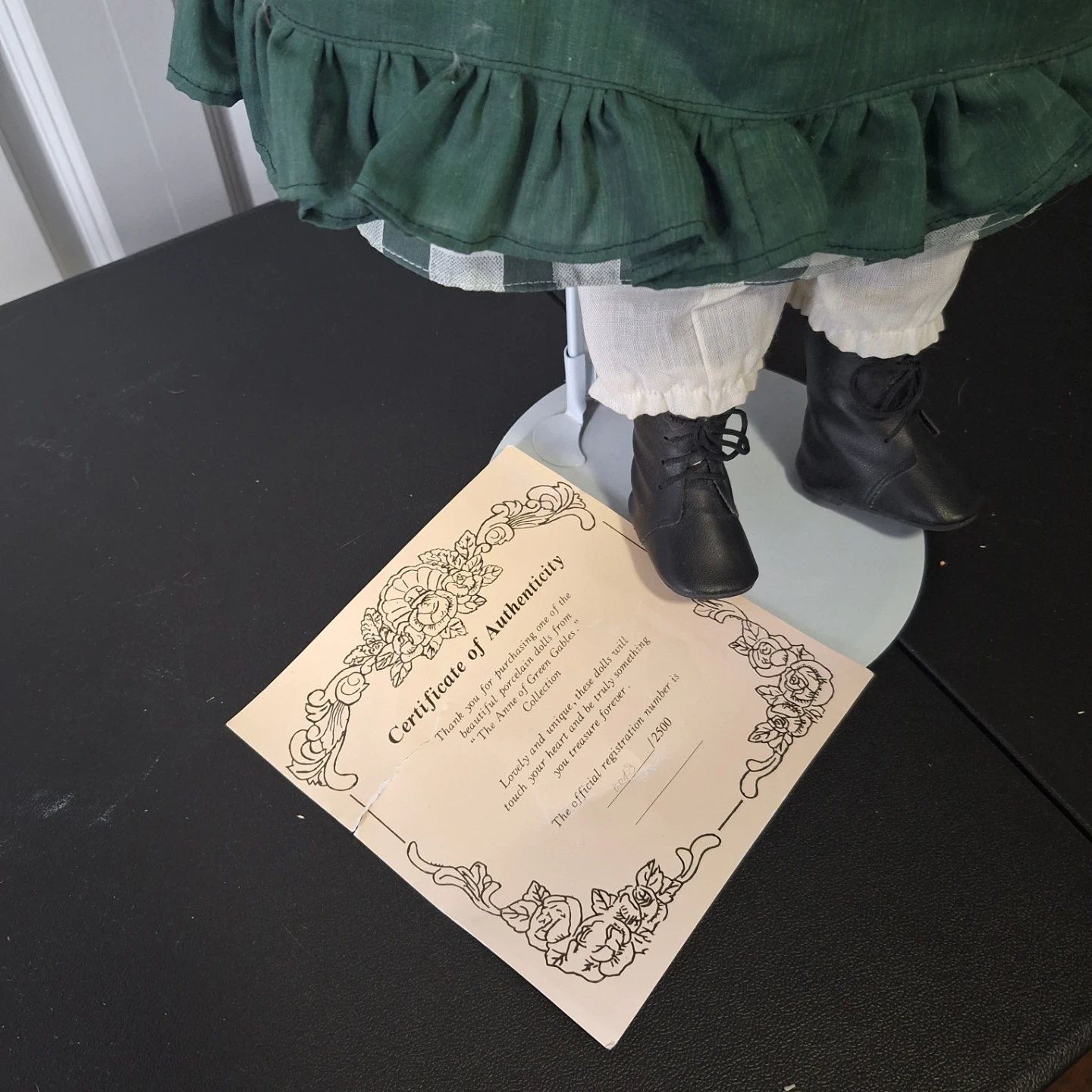 Selling a beautiful porcelain doll from The Grace Collection. She's wearing a lovely green dress and hat. Comes with a certificate of authenticity. A treasure forever!