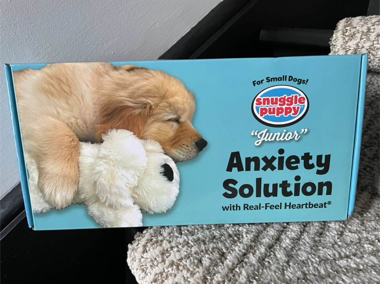 Snuggle Puppy Heartbeat Stuffed Toy - Pet Anxiety Relief, Sealed Box. $35 firm Snuggle Puppy Junior is designed to calm your dog's fears, loneliness, and separation anxiety. It features a pulsing Real-Feel Heartbeat and is machine washable. It's ideal for small dogs under 30 lbs and helps puppies sleep through the night.