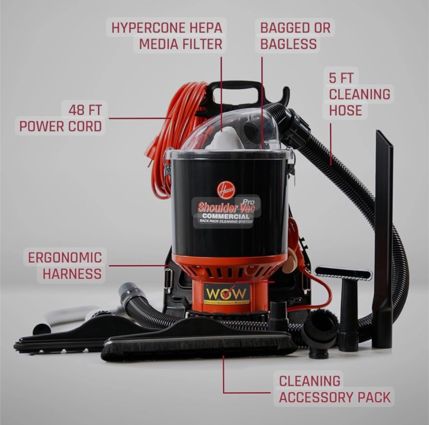 Selling a Hoover Shoulder Vac Commercial backpack cleaning system. It features a Hypercone HEPA media filter and can be used bagged or bagless. It comes with a 48 ft power cord and a 5 ft cleaning hose, plus a cleaning accessory pack. Great for commercial or home use! Used it twice, is very powerful but my condo is pretty small so I bought a smaller one, bought it for 600+ , let me know if you’re interested.