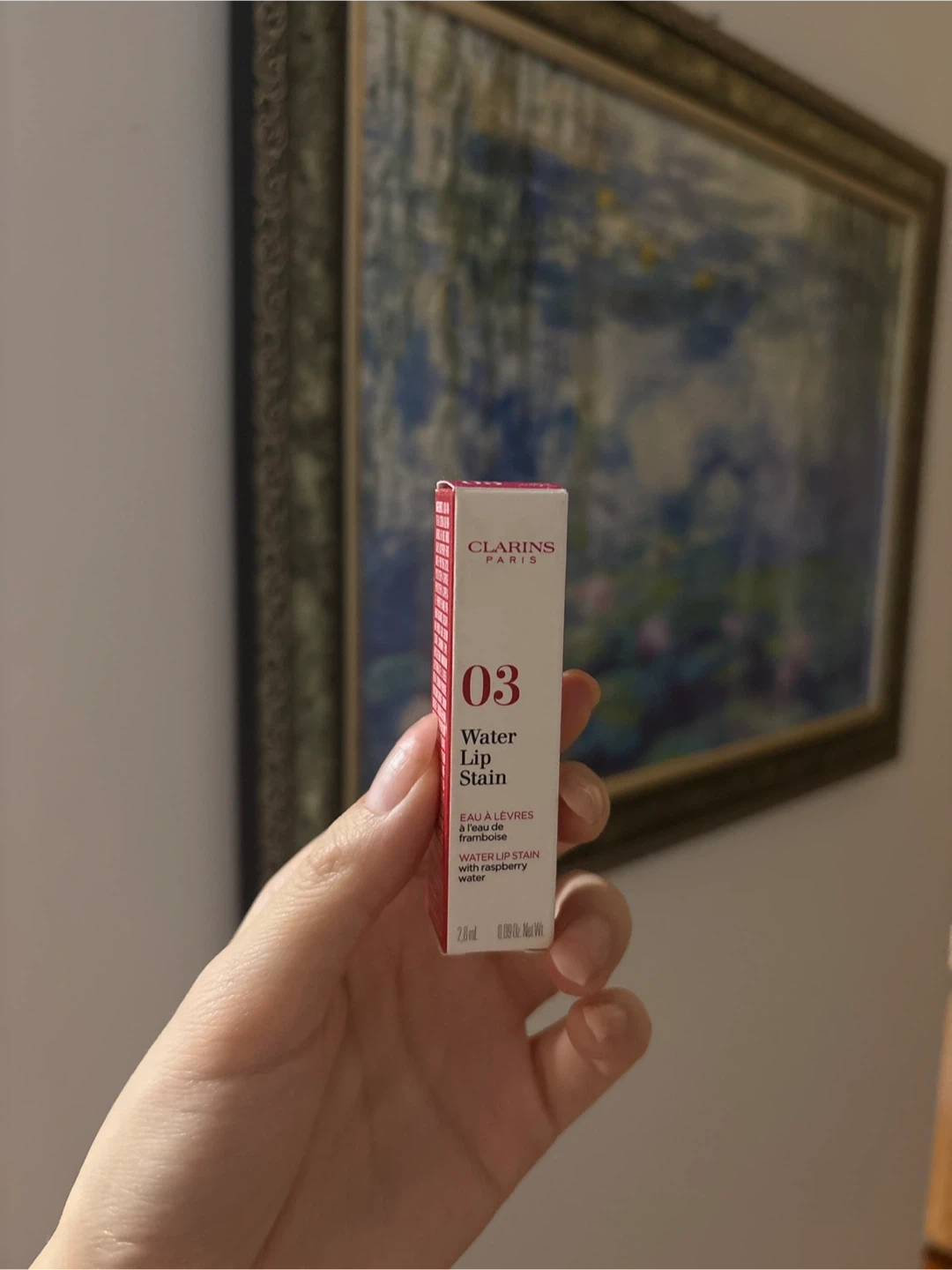 Clarins 03 Water Lip Stain in a raspberry water shade. It's 2.8ml and includes the original box. This lip stain would be great for someone looking for a light, natural lip colour.