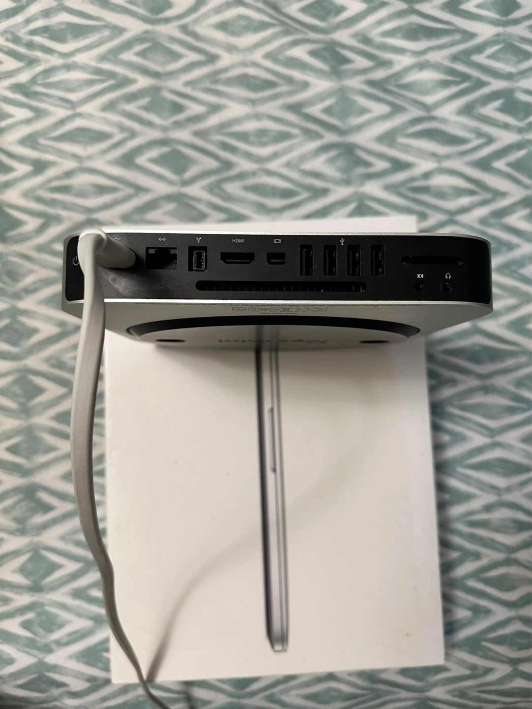 Mac Mini from 2010 with an Intel i3 and 320 GB of storage. I believe it’s 4GB of ram, but I’d have to check again.