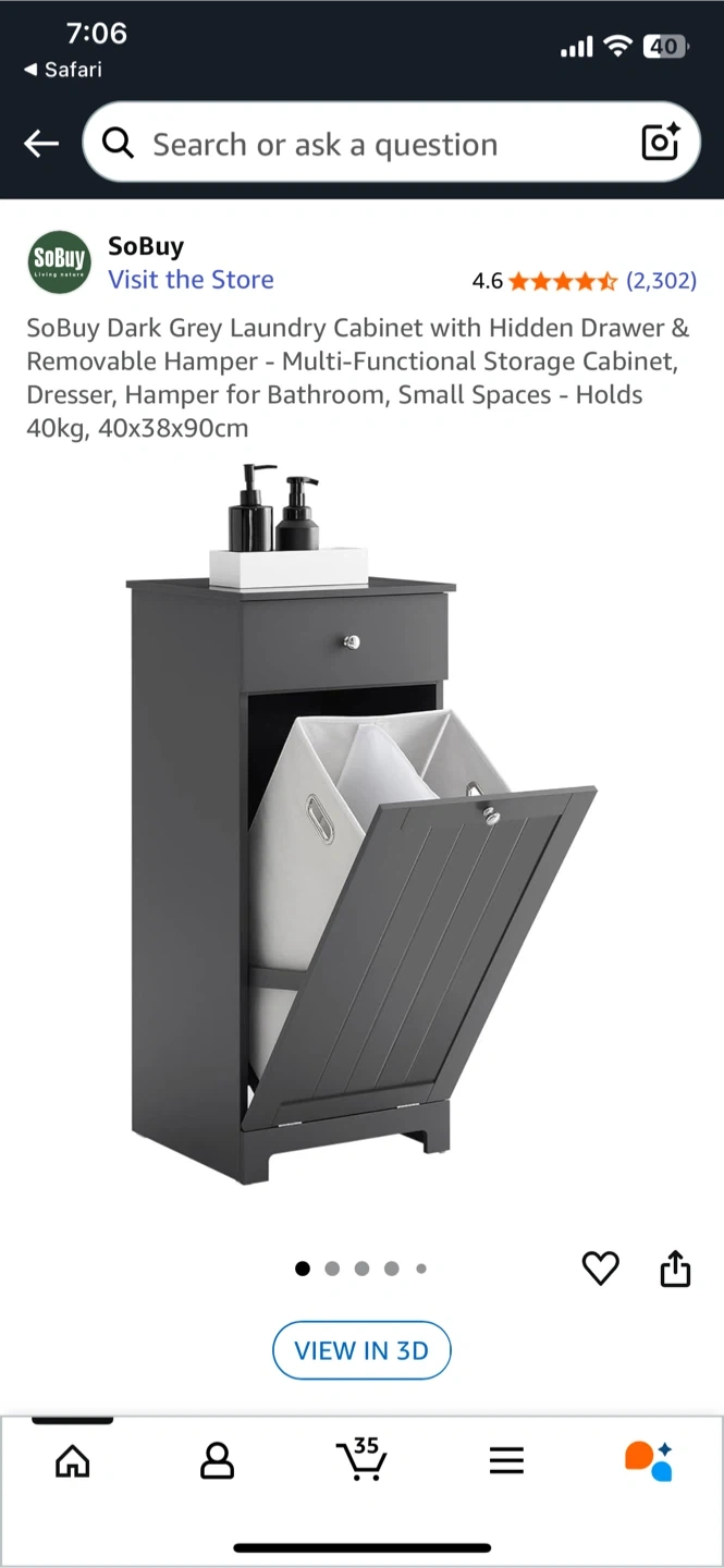 10Selling a SoBuy dark grey laundry cabinet with a hidden drawer and removable hamper! It's a multi-functional storage cabinet perfect as a dresser or hamper for bathrooms and small spaces. It can hold up to 40kg and measures 40x38x90cm