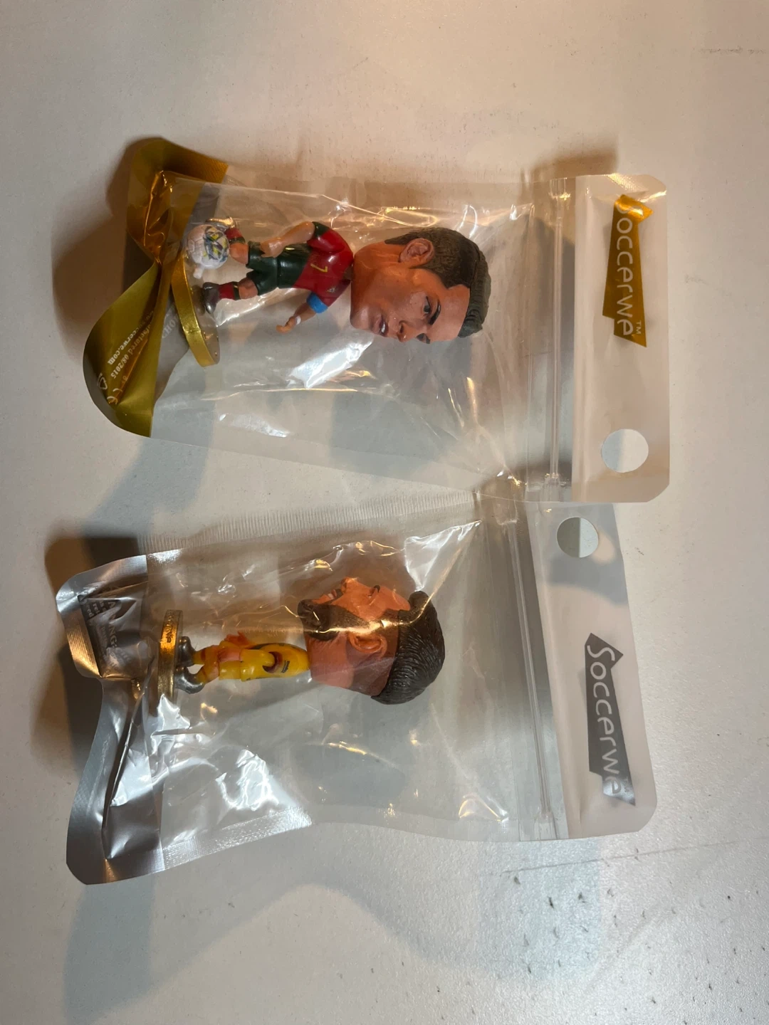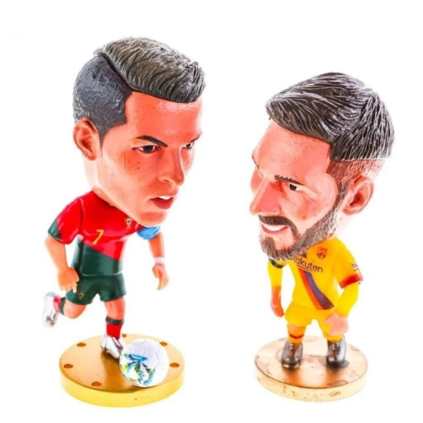 65Selling two Soccerwe football star bobbleheads featuring Cristiano Ronaldo and Lionel Messi. These are new and still in their original packaging. Perfect for any soccer fan's collection! 7 cm tall
