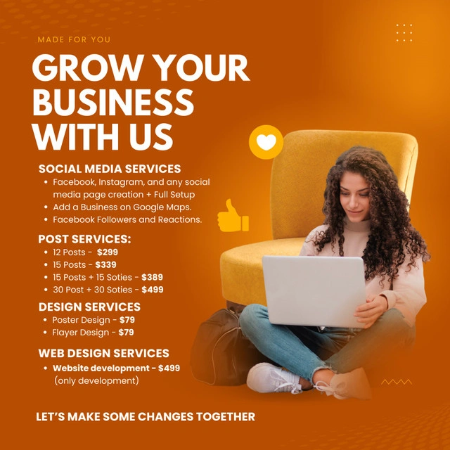 60Ready to GROW? Your customers are online, and you should be too. We make it simple, fast, and affordable. We'll build your brand from the ground up: • BE SEEN: Full social media setup + Google Maps listing. • STAY ACTIVE: Engaging post & story packages to keep your audience hooked. • LOOK PROFESSIONAL: Stunning poster, flyer, and website design. Don't let your competitors get all the attention. Our packages are designed to give you a complete digital presence without the hassle. Feel free to message if you have any questions!