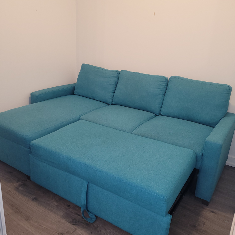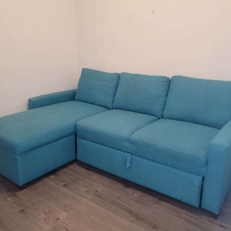 5. Beautiful blue/green sofa bed, clean, pull out bed. Selling due to moving out. I can hold it against a small deposit, let me know if you're interested. 2.06 x 1.40 m. Pick up only