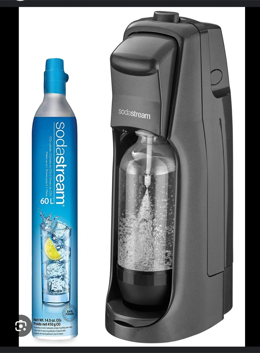 Get your sparkle on with this SodaStream! It comes with the sparkling water maker and a CO2 cylinder. Make up to 60L of sparkling water with one cylinder. Enjoy creating your own fizzy drinks at home! Cylinder included is not full, guessing about half full. Also includes 2 bottles and 2 flavour syrups (lime and orange).