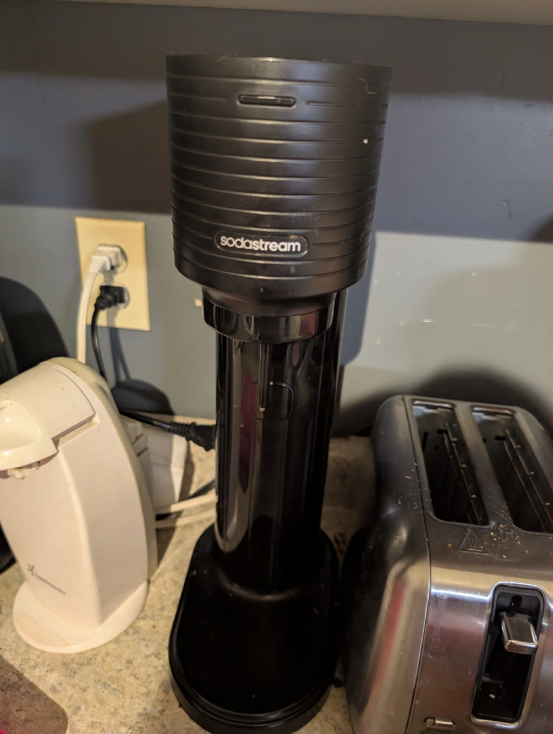 I'm selling a SodaStream sparkling water maker! It's in good condition and ready to make your favourite fizzy drinks at home. It's black, so it will match any kitchen aesthetic!