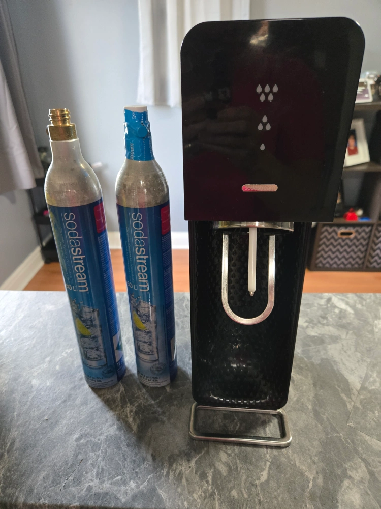 Get ready to make your own sparkling water at home with this SodaStream! It comes with two CO2 canisters so you can start bubbling right away. Enjoy fresh, fizzy drinks whenever you want