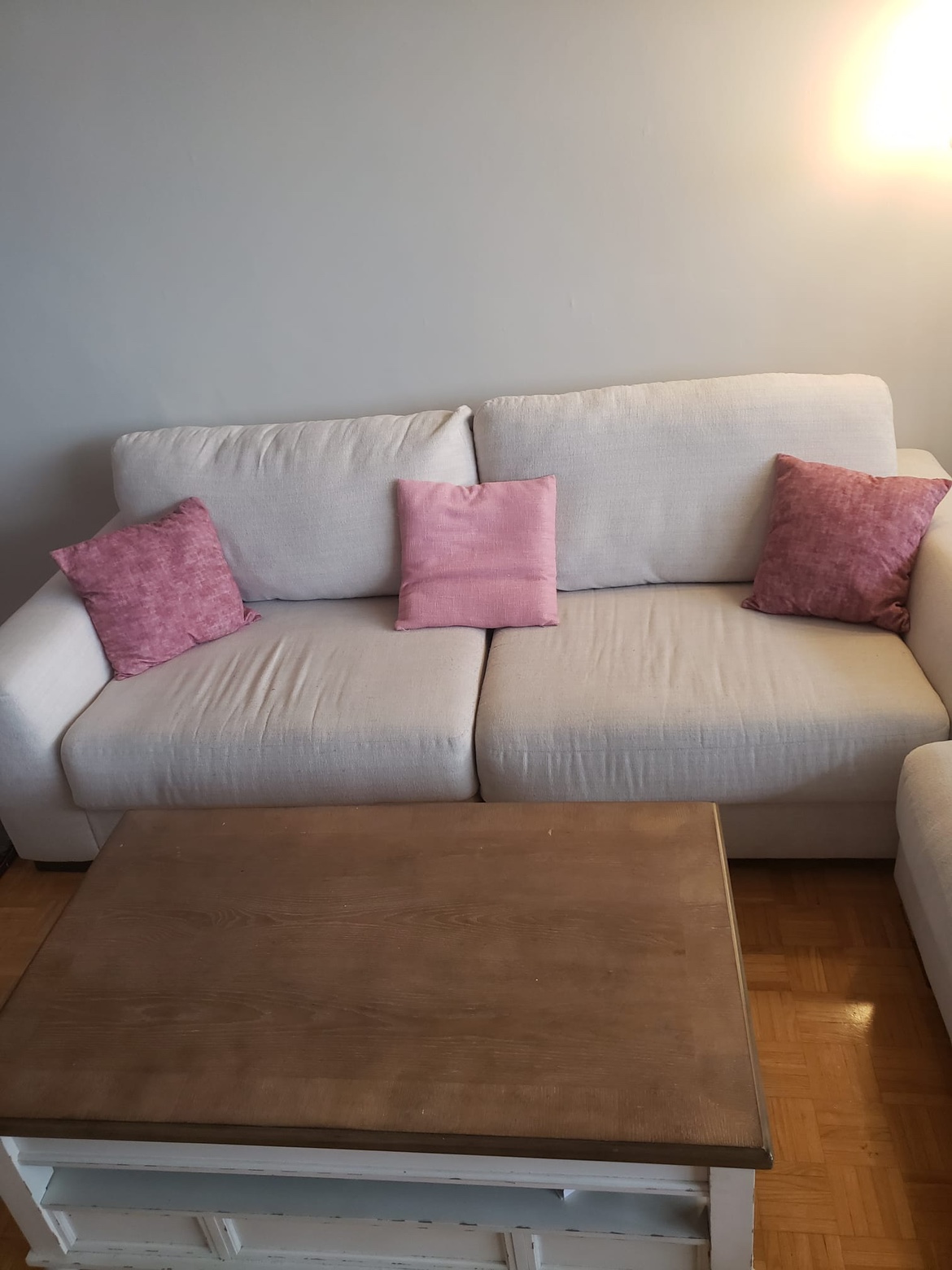 Pair of Armchairs - Wood Frame, Neutral Fabric