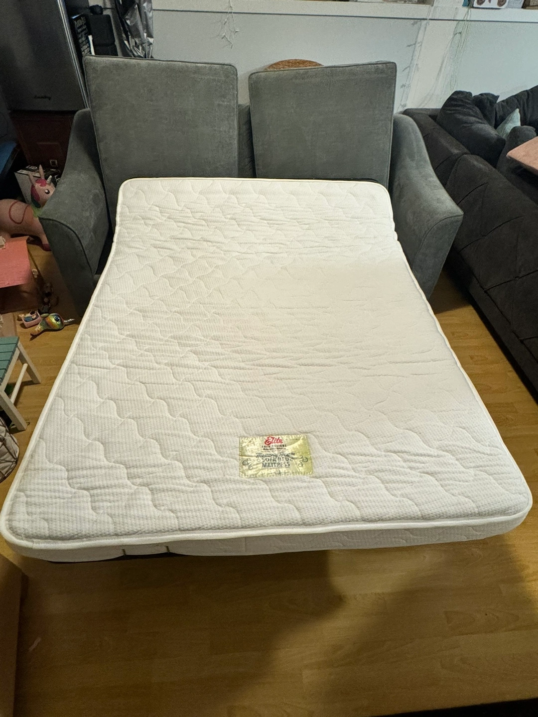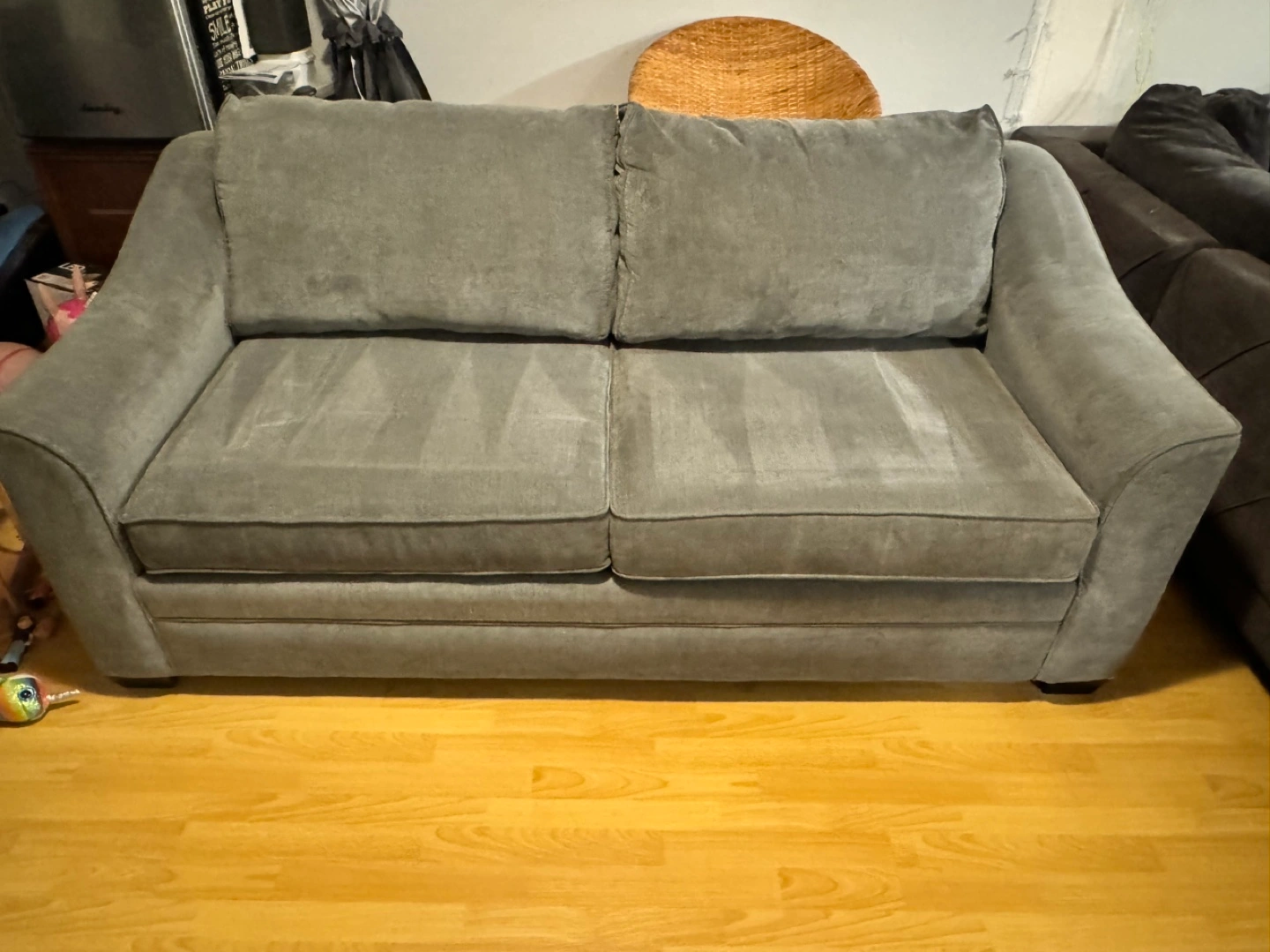 5Very comfortable and clean sofa bed from Elite Sofas in Delta. Blue/grey colour. Dimensions: 78” length, 38” width, 34” height. Double sized mattress. In great condition from a smoke-free, pet friendly home. $300 obo