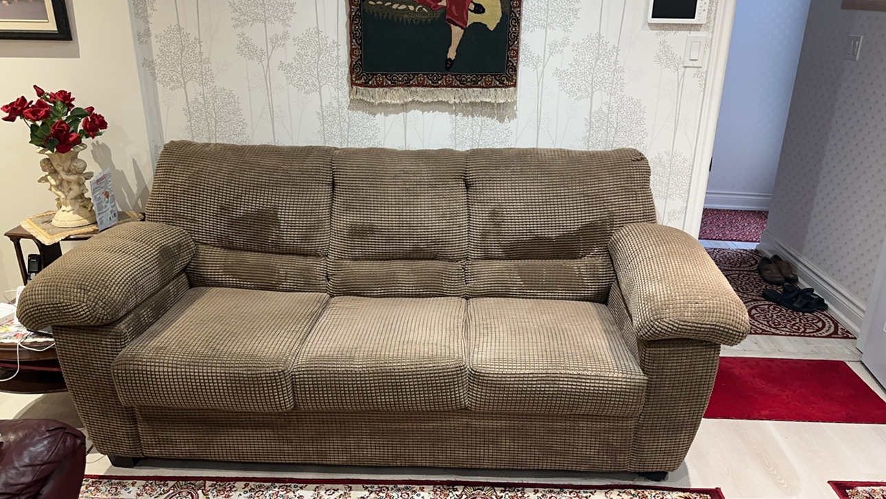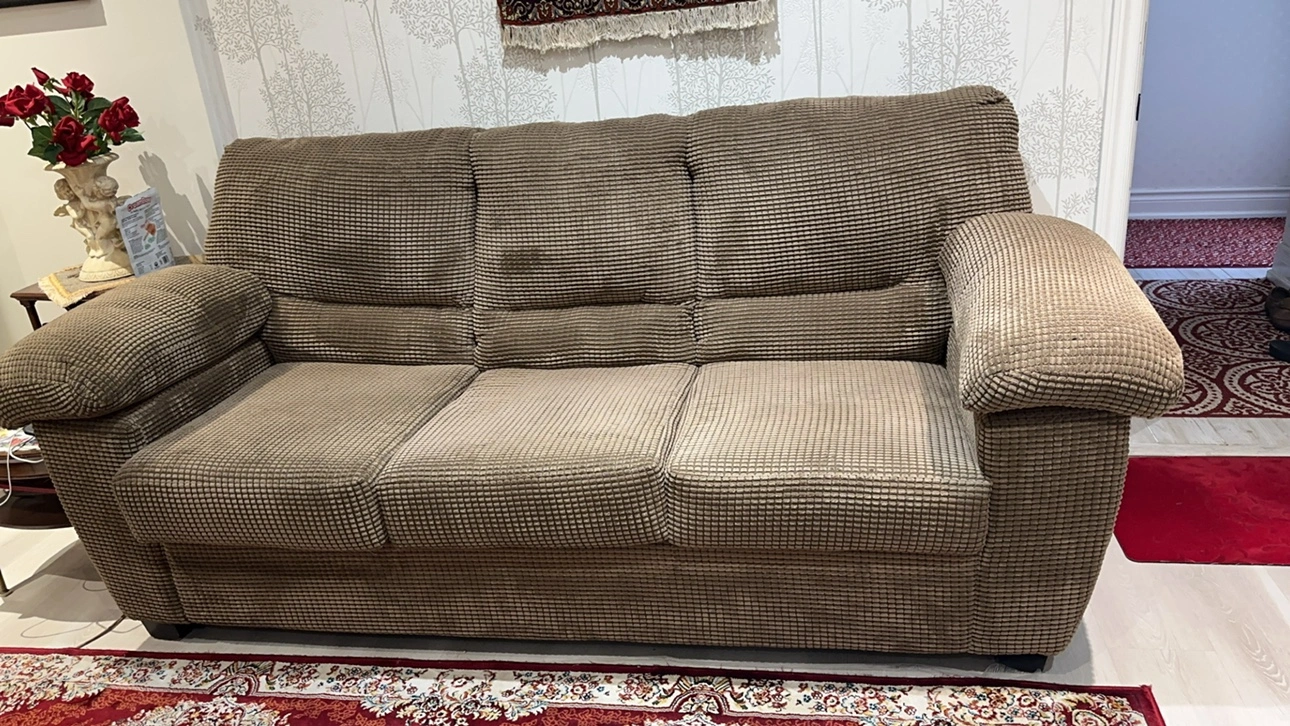 Grey Corduroy Sofa with Pillows