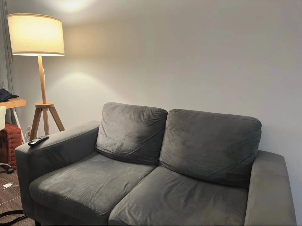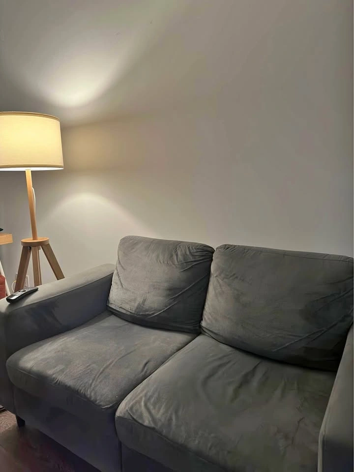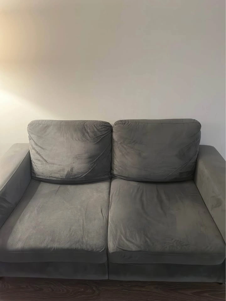 Sofa for sale! Grey/Green velvet type material. no visible wear and tear, can be dismantled easily. Bought for $400. Easy to clean! it’s 152.5cm length and 82cm height and the width is 76cm. Great for condos and smaller spaces! Pick up only.