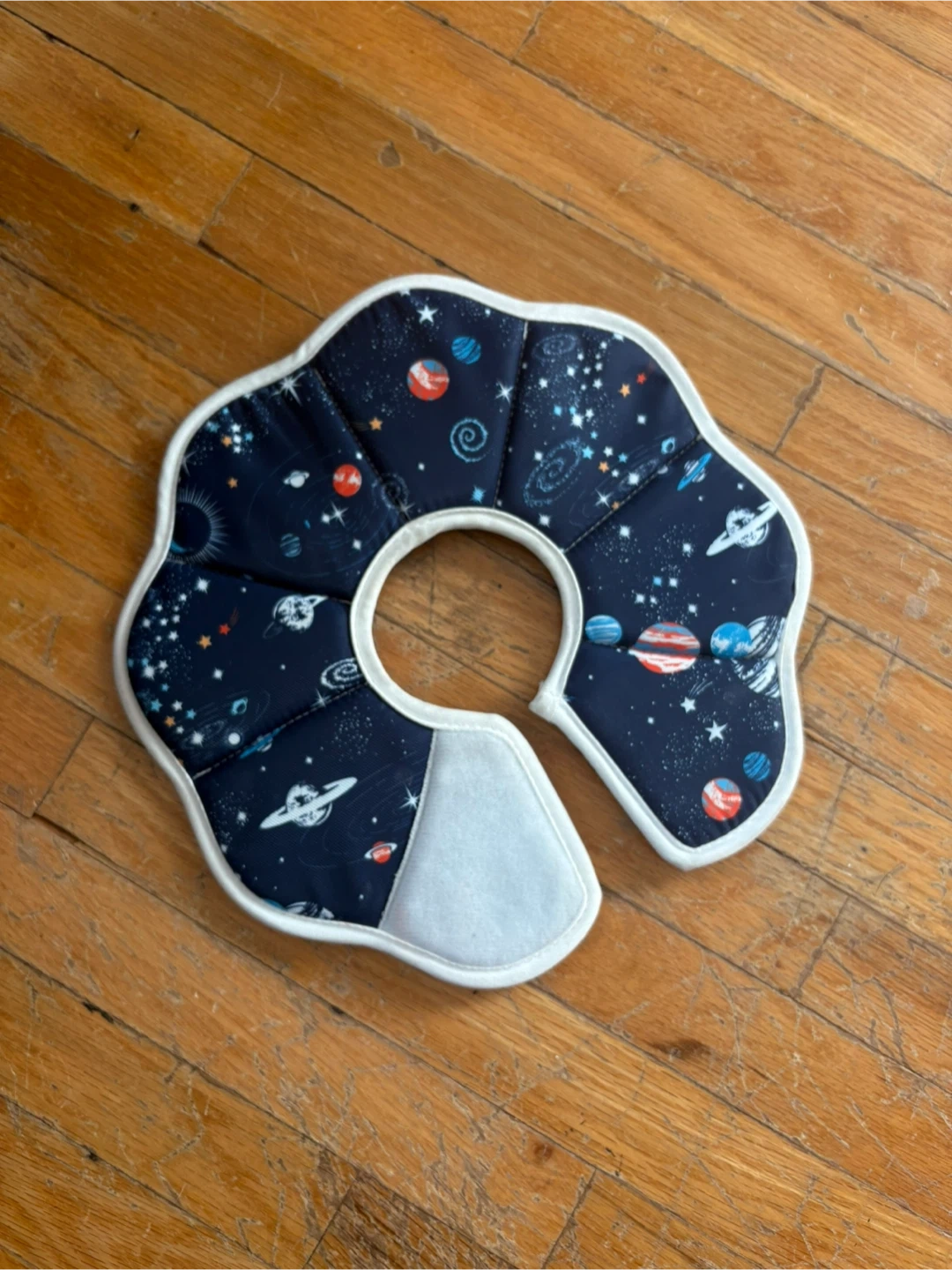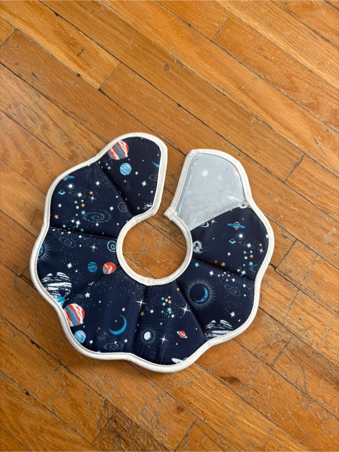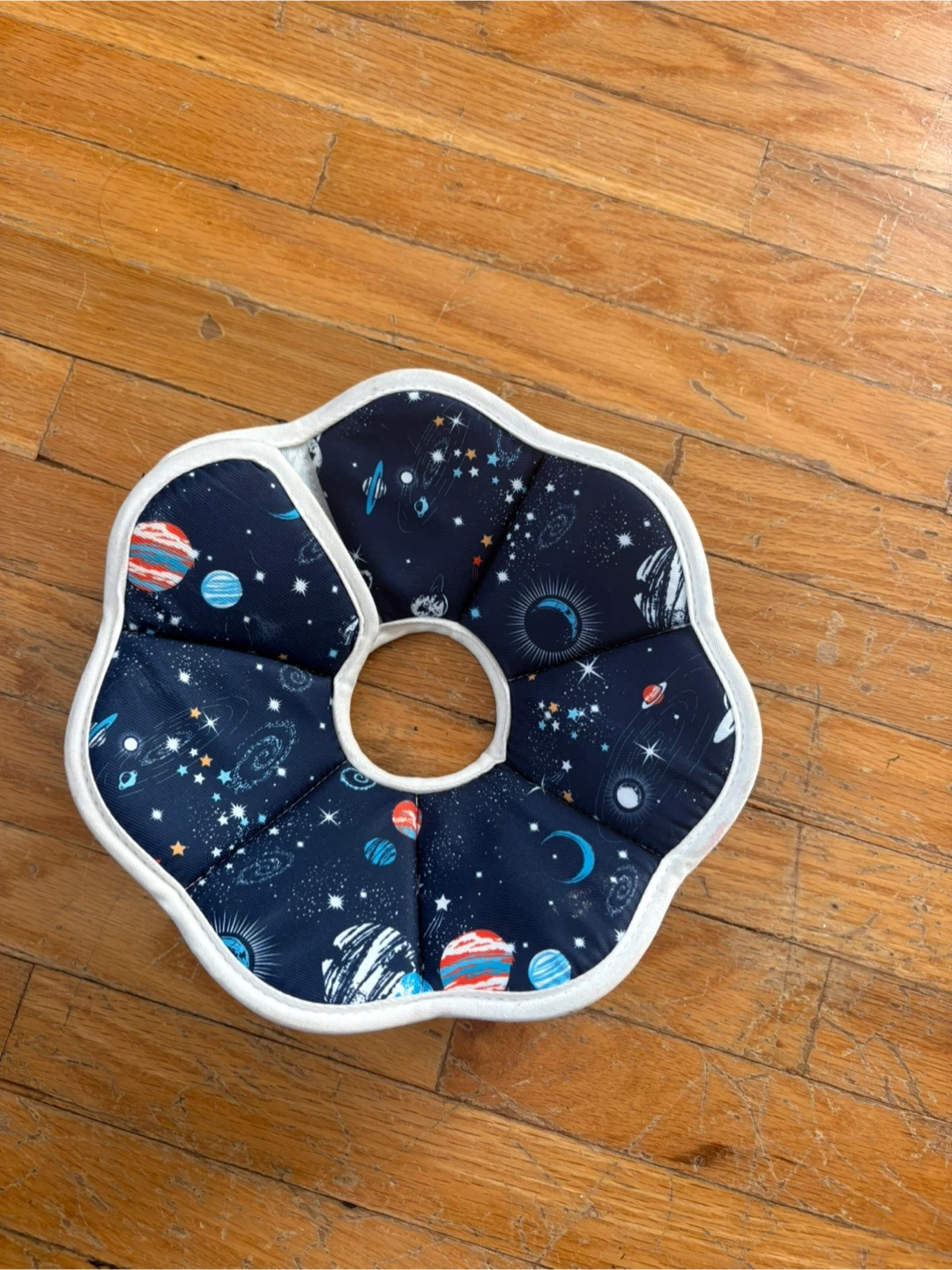 55•Never used - brand new •Size small to an extra small, good for kittens and small dogs. •Very soft and comfortable for pet. •Same print on both sides so can be reversible. •Velcro is strong and in very good shape as cone of shame is new LOCATED IN PICKERING