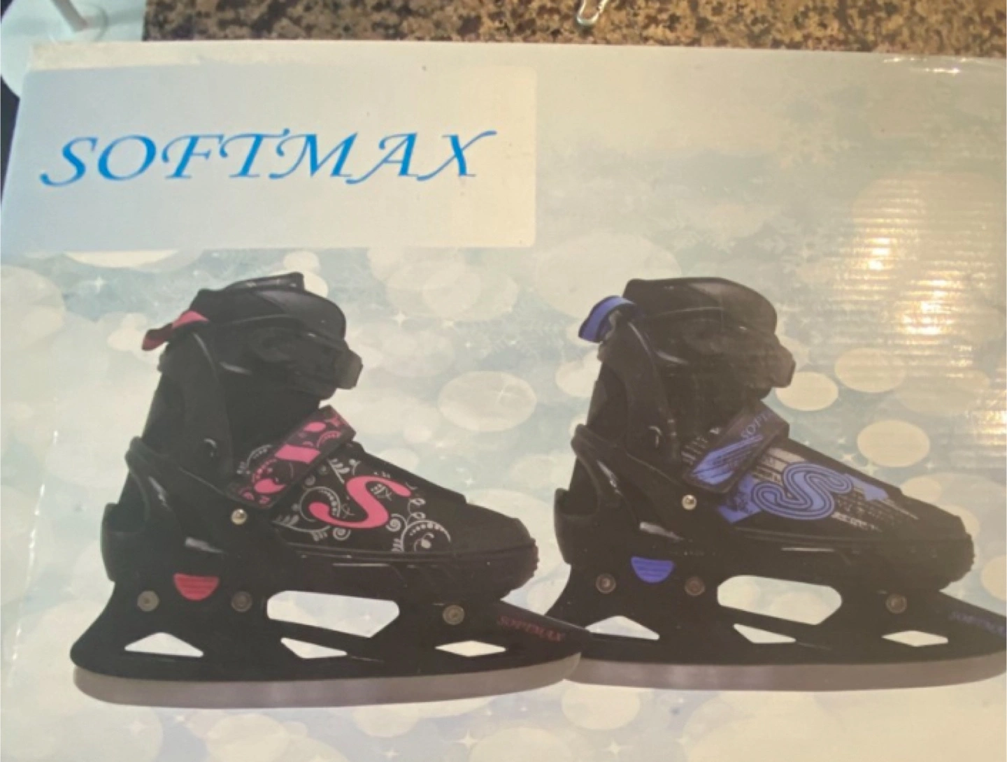 Selling a pair of SOFTMAX kids adjustable ice skates. Great for learning to skate! The box is included