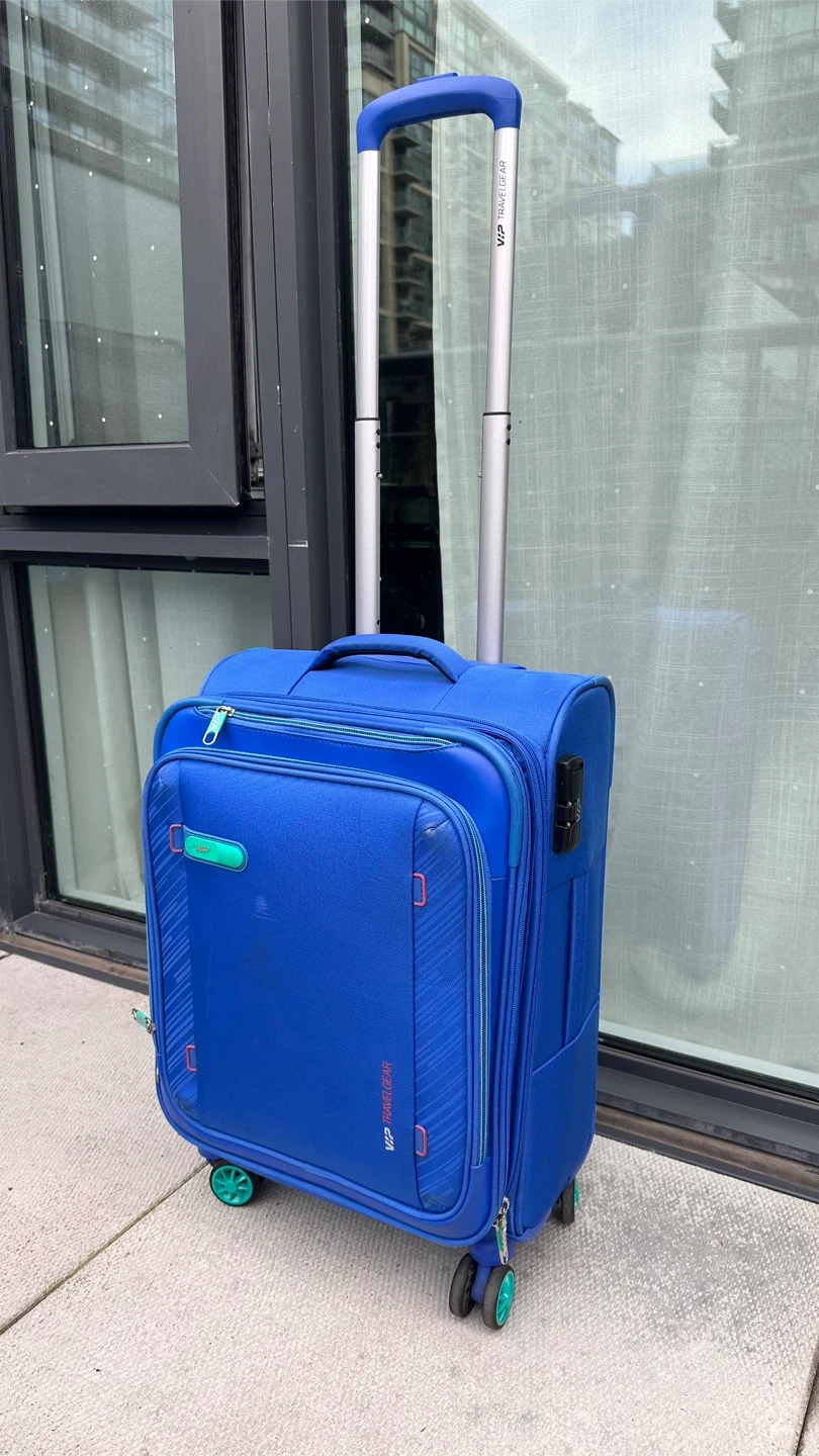 Softside carry-on expandable 8-wheel luggage in excellent condition. Lightweight and wheels run smoothly. Dimensions: 14.5”W x 18.5” H x 10”D Pick up at Front St and Sherbourne St. Cash only please.