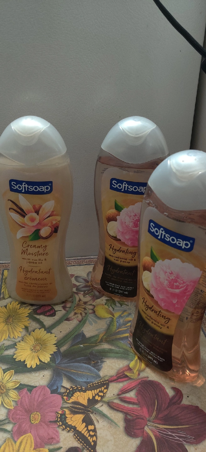 Selling 3 bottles of Softsoap moisturizing body wash! One is the Hydrating macadamia oil & soft peony scent, and the other is Creamy Moisture warm vanilla & jojoba oil. Each bottle contains 20 fl oz (591 mL)You will need a pickup day to reserve.