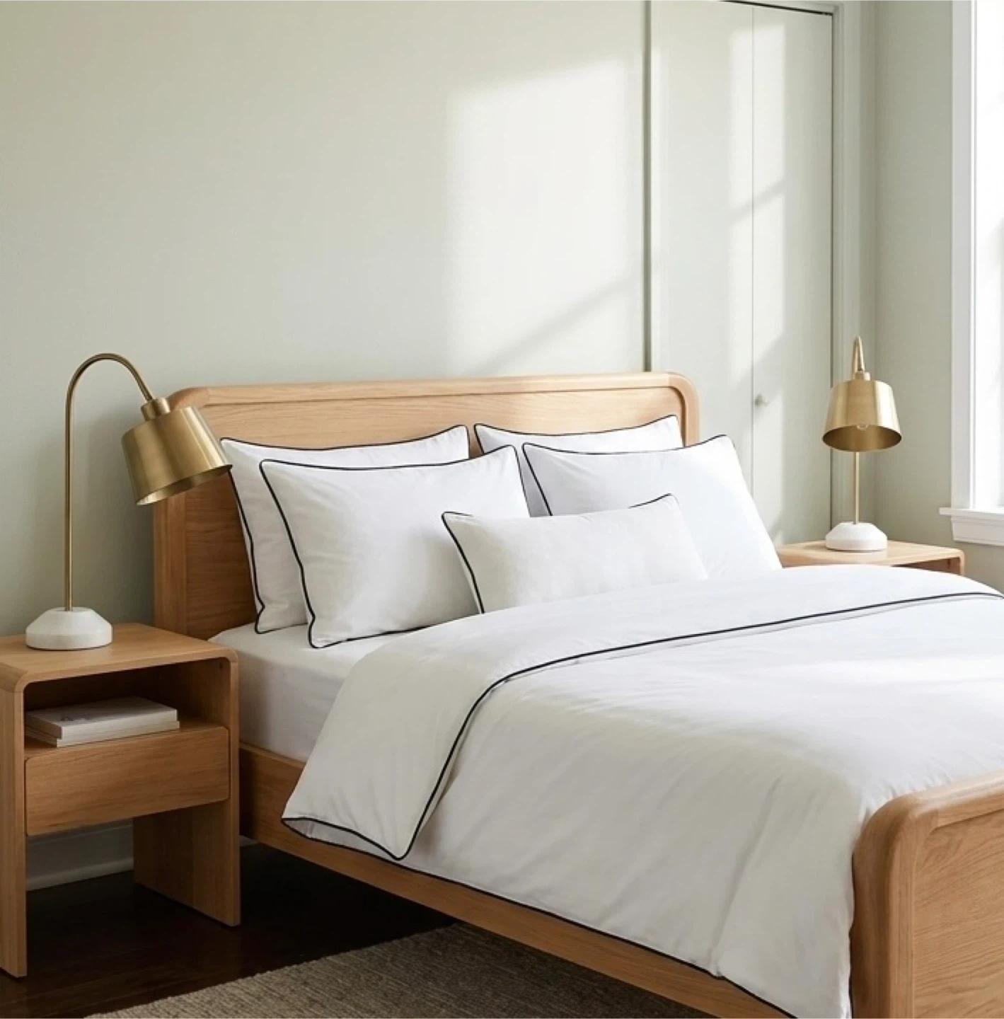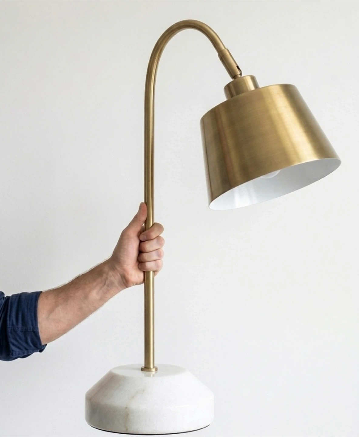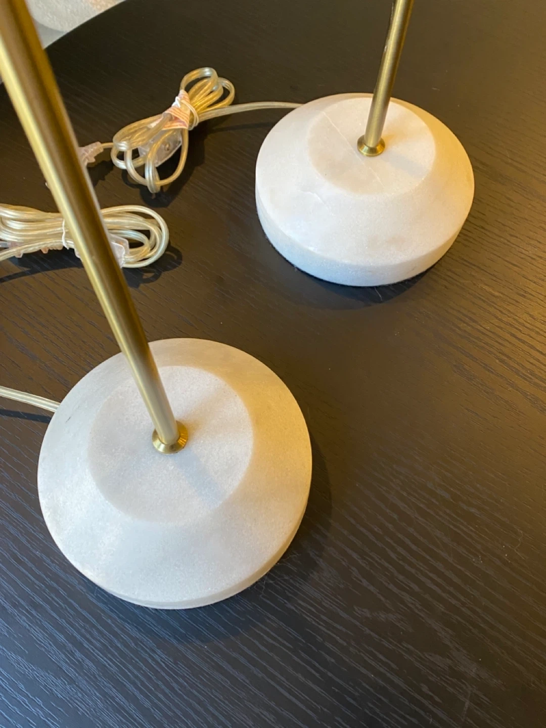 • Heavy, solid white marble bases (providing excellent stability) with a sophisticated brushed brass finish.