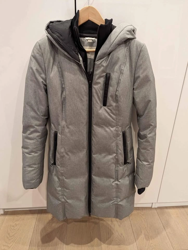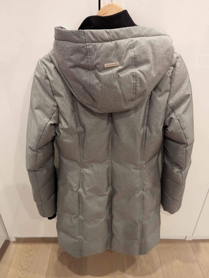 10The CAMELIA by SOIA & KYO is an above-the-knee-length coat engineered to keep you comfortable up to -30 °C (-22 °F). Made using RDS certified classic down, this slim-fit winter essential has you covered with an impressive, oversized hood and channel-quilted bib + rib-knit zippered collar. Large hood with hidden button closure at hood opening Front placket over zipper with hidden snaps Nylon channel quilted bib & rib knit collar with 1-way zipper closure 1x1 rib-knit storm cuffs Polar fleece-lined pockets Fully lined Slim-fit Above-knee-length Up to -30 °C / -22 °F Water-repellent / Water-resistant 700+ fill power hi loft down Size XS, slim fit – Our signature fit, closest to the body. Length: Mid — Intended to hit between upper thigh and the knee Coat length from shoulder to hem: 36'' / 91 cm.