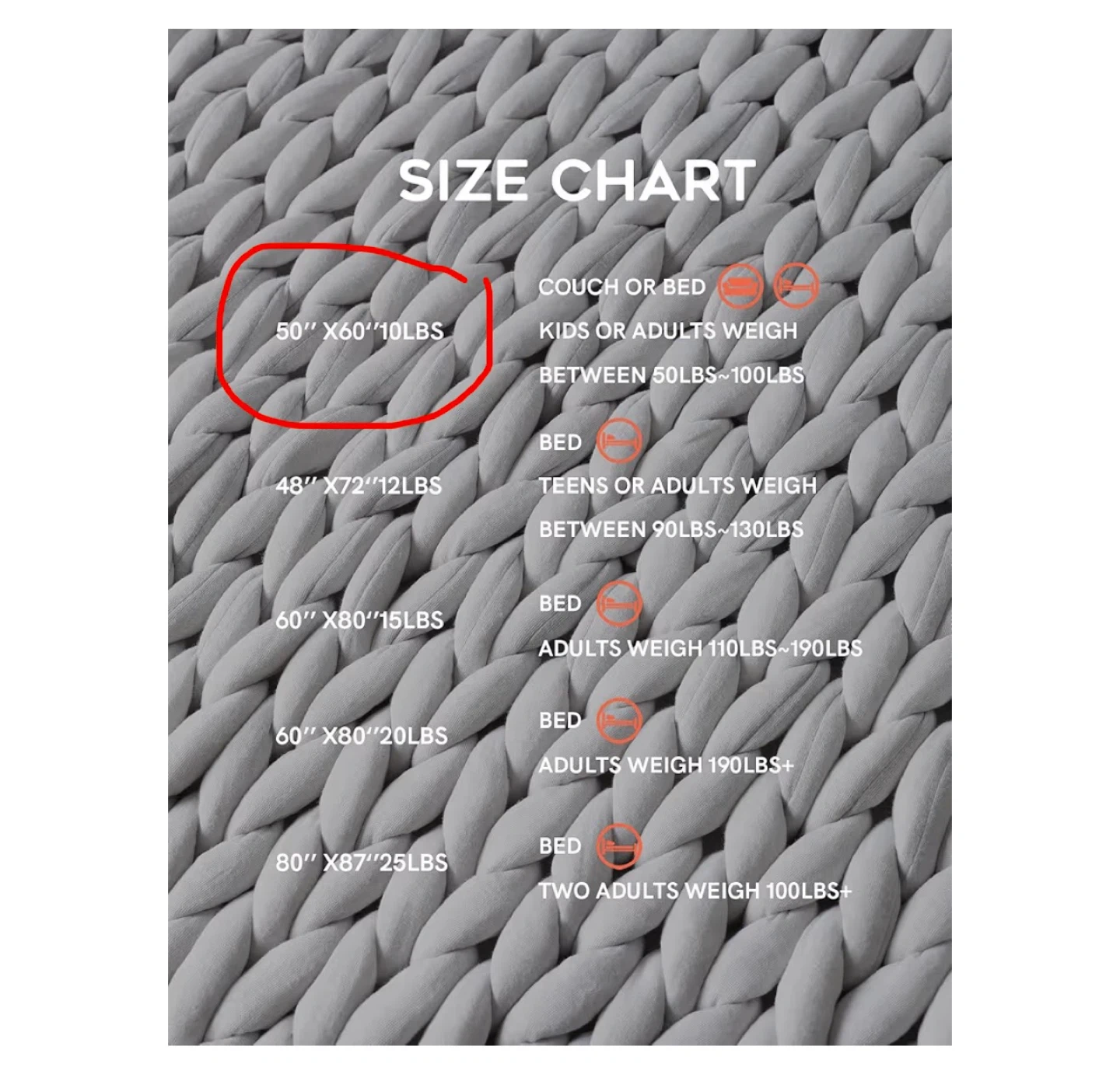 • [Sizing Options] 50"x60"10 Ibs: Ideal for adults weighing between 50 Ibs and 100 Ibs.