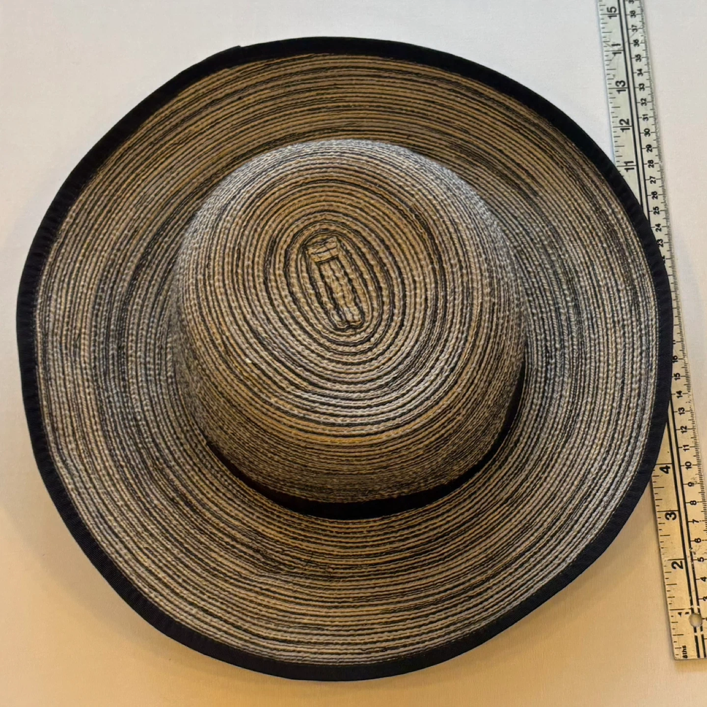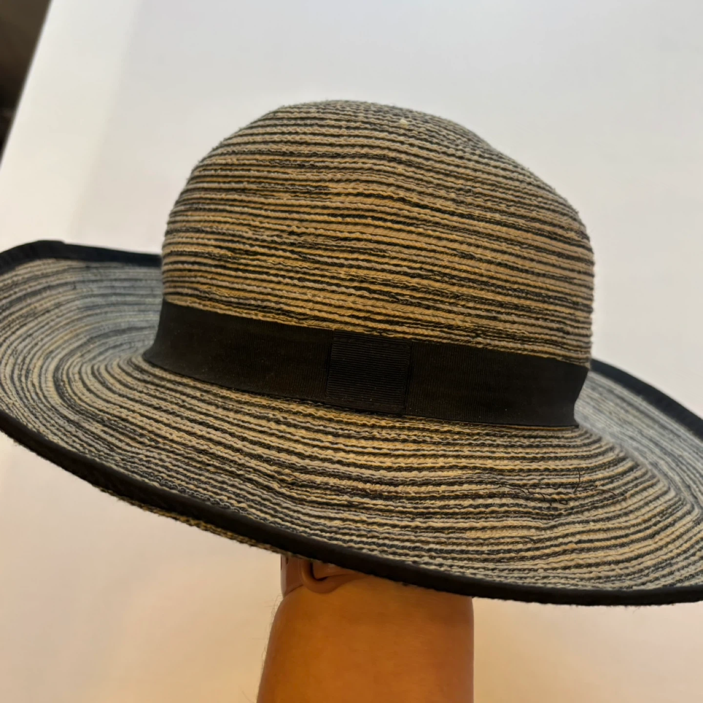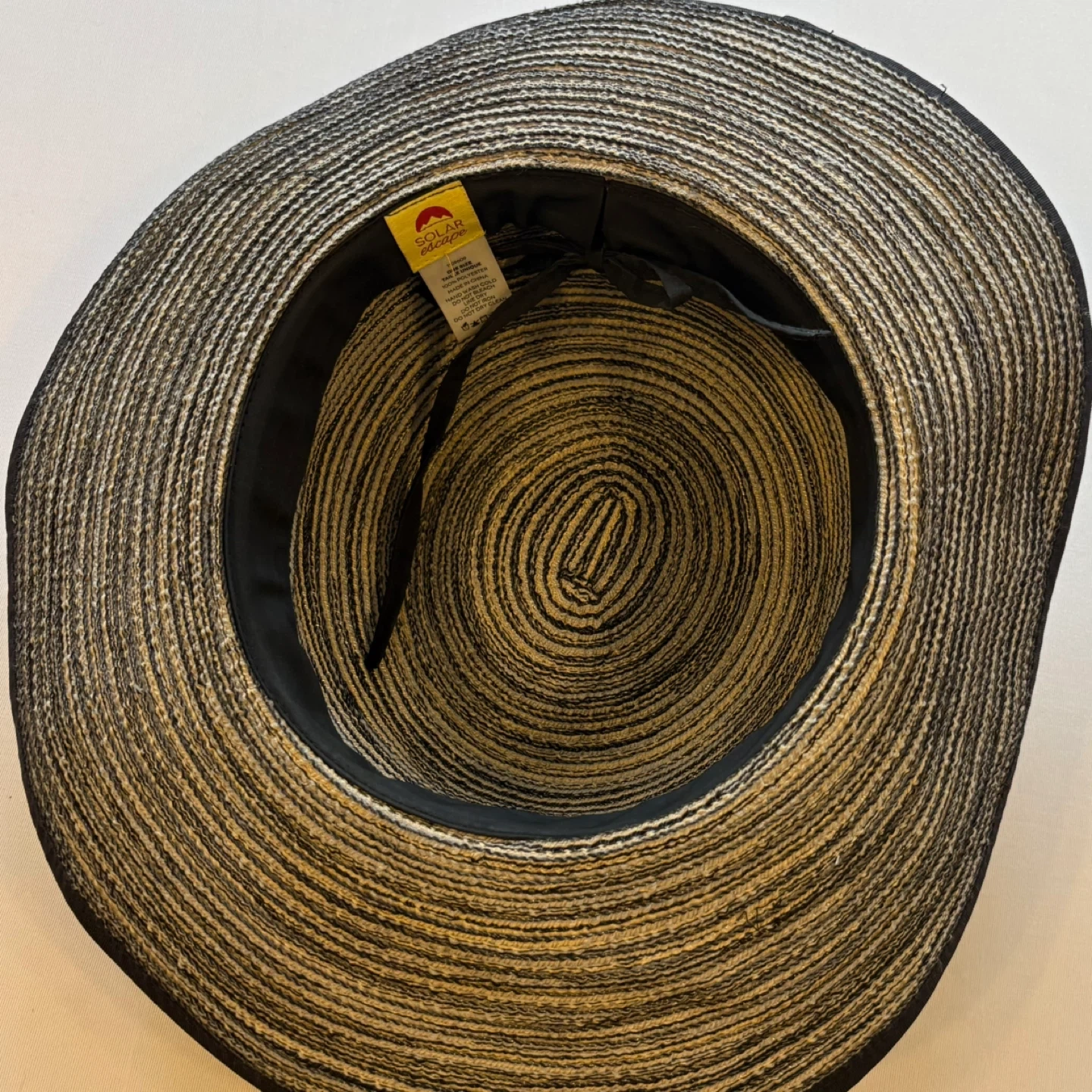 122This stylish Solar Escape wide-brim hat is perfect for beach trips, vacations, gardening, or everyday sun protection. It features a chic black and beige/tan striped woven pattern that mimics the look of straw, with a solid black band and rim trim. Made of lightweight 100% polyester, it's comfortable for all-day wear and is one size (OS). Great for a classic resort or boho summer look. Keywords: Solar escape, wide brim, floppy, sun, beach, vacation, garden, straw, woven, stripe, black, beige, tan, polyester, resort, summer, boho Brand: Solar Escape Era: 2019 Color: Black and Beige/Tan Stripe Print: Woven Stripe Pattern Material: 100% Polyester Condition: Excellent Used Condition (EUC) Size: One Size (OS) See photos for measurements. Flaws: None noted Cross posted. Winnipeg - Pick up only (Located 2 blocks west of Polo Park). Shipping options available through other platforms message me for details.