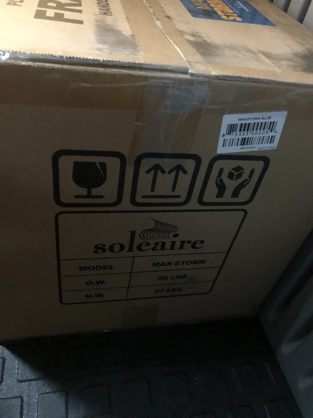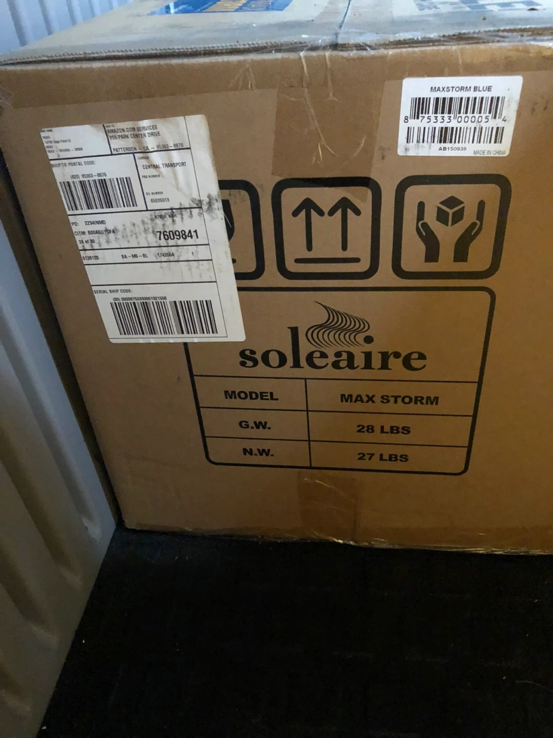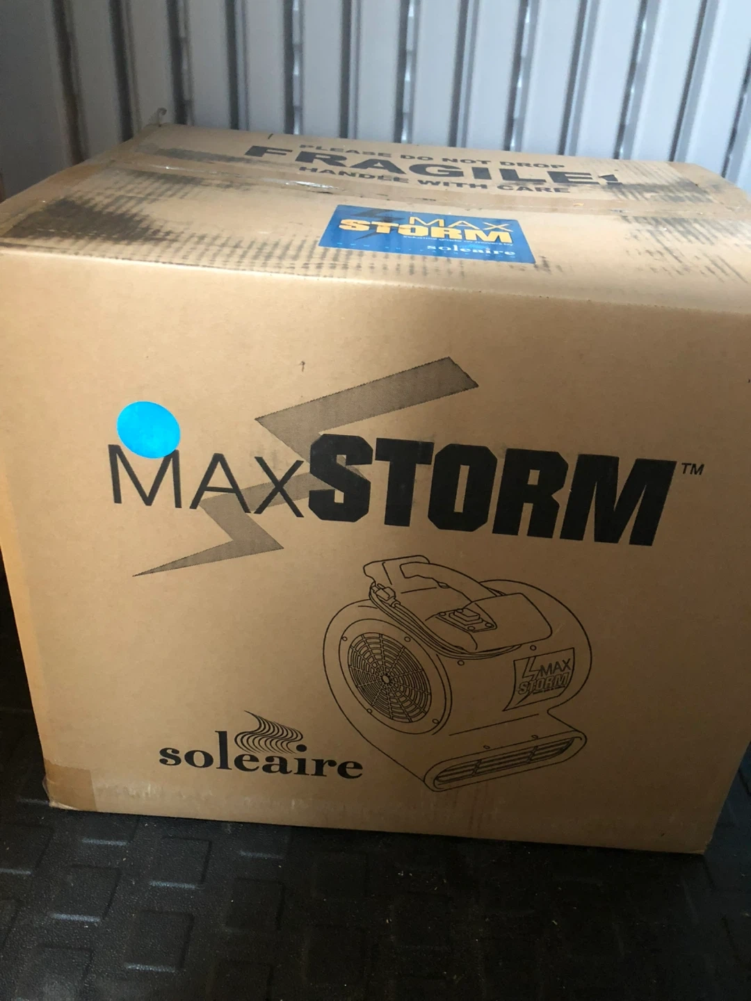 High Velocity: This High Velocity Floor Fan Has Multiple Speed Settings To Make Sure The Floor Dries Quickly So No One Slips Or Wet Paws Leaving Tracks. Perfect For The Floor, Carpet, Hallway, Or Garage. Heavy-Duty: Thanks to its strong single-piece housing, this air mover fan is perfectly suited to work in harsh commercial and industrial environments. Multi-Purpose: The Box Floor Fan Has 3 Operating Angles That Allow You To Blow Air Across The Ground At 0, 45 And 90 Degree Angles. Perfect For Home, Garage, Or A Shop. Portable And Stackable: This Air Mover Blower Is Stackable And Perfect For Use In Crawl Spaces, Cabinets, Closets, Or Any Other Cramped Area You May Need To Dry Warranty: 1-year Parts and Labor and 5-year housing warranty. Designed With Our Heavy Duty single-piece plastic that is impact resistant. Soleaire has redefined how air movers and fans are produced with this MAX STORM. This blower is produced with a thoroughly durable Roto-molded polyethylene shell that can withstand all the abuse/use that is handed out in the environments that these are used in. They are lightweight, draw low amps, and move large volumes of air. When running a professional Janitorial or carpet cleaning business, you'll need multiple fans that can be left behind at a job and picked up later, for the ultimate in efficiency. Simply start a job in the morning and come back late in the afternoon to pick up your fans, and inspect the job. Leaving an individual's house with clean/dry carpets will make them a repeat customer for life! Technical Specficiation Color: Blue, Orange, Purple Voltage: 115V 60Hz Motors: 1/2 HP Speeds: 2 Speeds Amp Draw: 5 Amps Safety Certification: ✓ Size (LxWxH): 16" x 16.5" x 19.5" Power Cord Length: 25' Power Cord