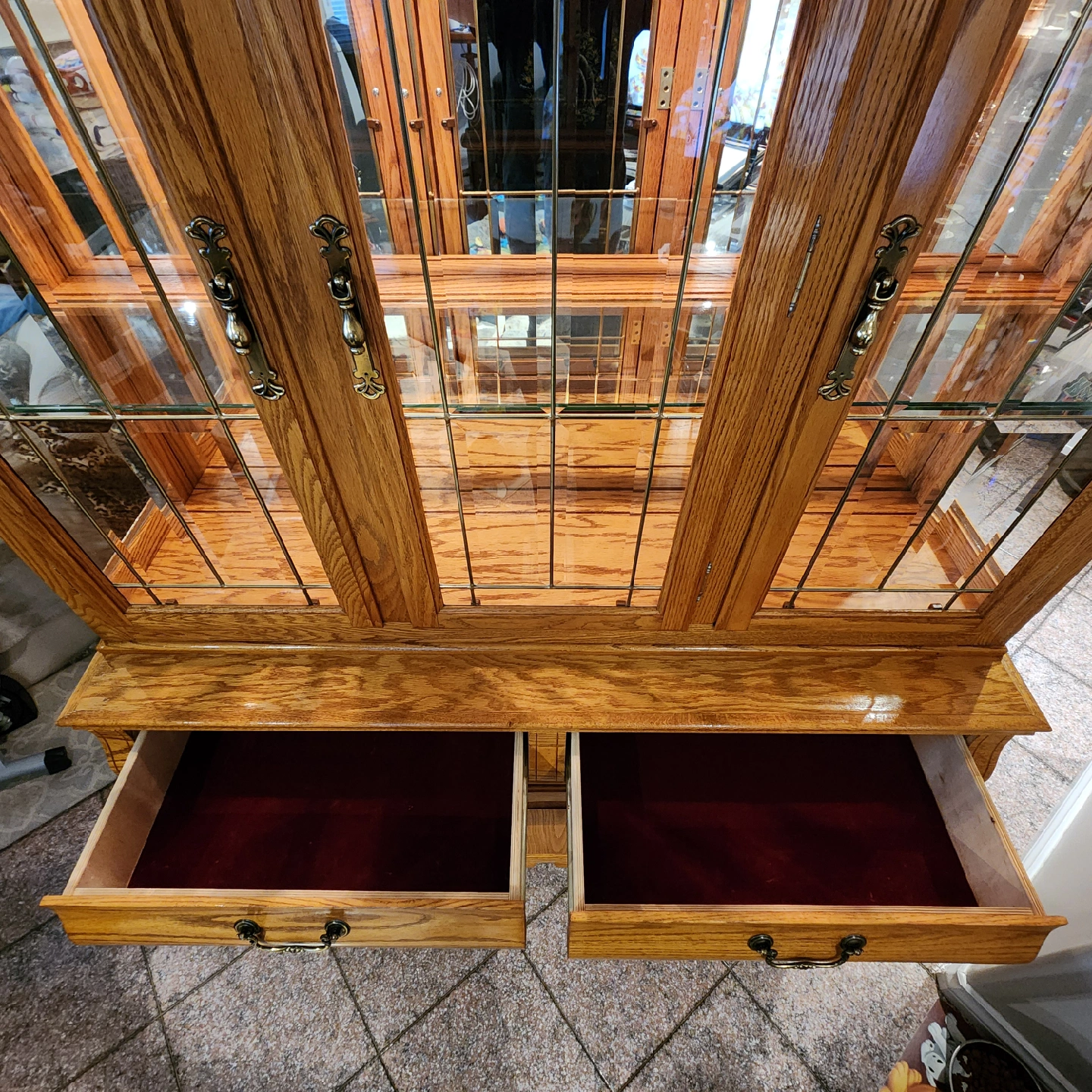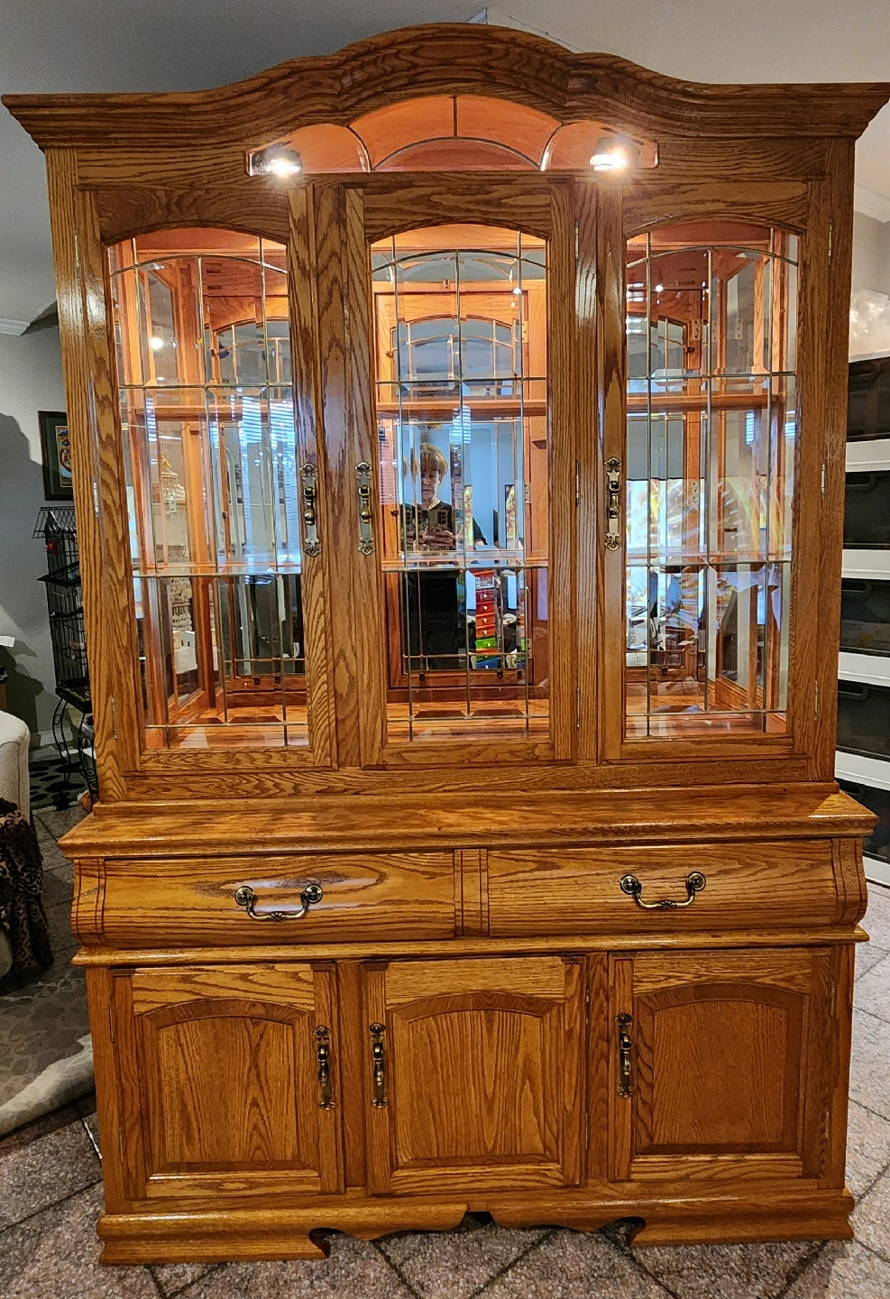15Beautiful two-piece solid oak hutch and buffet, lovingly cared for since 1998. Purchased from Oaksmith Interiors - Maple Ridge, B.C., manufactured by "Creations" - Fresno, California. Leaded-glass doors, mirrored back, built-in lights, and red-velvet drawers. Adjustable buffet shelf. Freshly cared for with "Touch of BeesWax with Orange Oil Wood Preserver" β gorgeous glow! Some scratches from age, but overall in great vintage condition. π Dimensions: 81"H Γ 53ΒΎ"W Γ 17"D base / 13"D hutch (14"D at crown) Top detaches from base for moving. π‘ Tsawwassen, Beach Grove area pickup π² $875 OBO (open to reasonable offers) #oak #hutch #buffet #oakfurniture #diningroom #solidwood #vintage #cabinet #displaycabinet #chinahutch #homedecor #tsawwassen #furnitureforsale