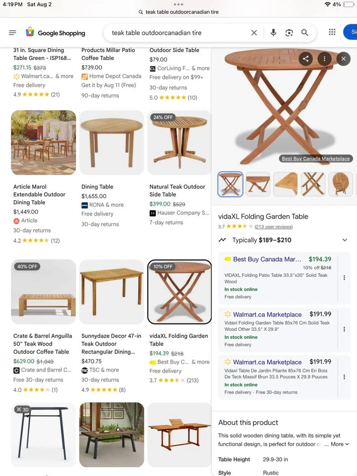 Solid teak table.. Pickup in Leduc…yes! It’s available