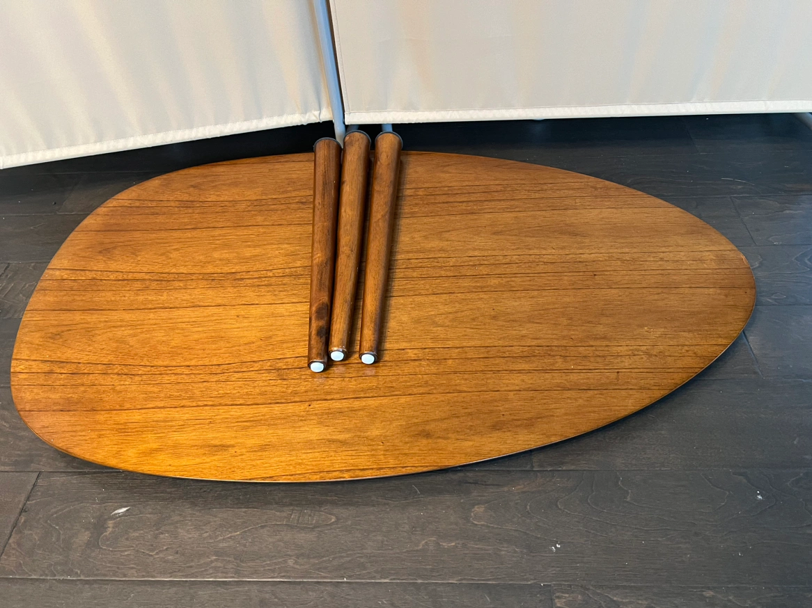 355Solid 3 legged wood table, very good condition, shaped like a Pine cone. Legs detach for easy transportation. Use mostly in living room. Dimensions are… H - 18” L - 39.5” W - 24” If item is still here, it’s still available. First come first served or whoever pays first. I accept etransfers as well and live near CN Tower. Free of smoke and pet odours and delivery is available. Check out other items seller has!!