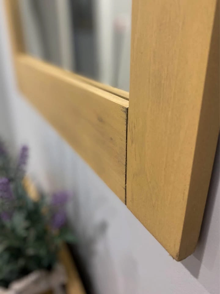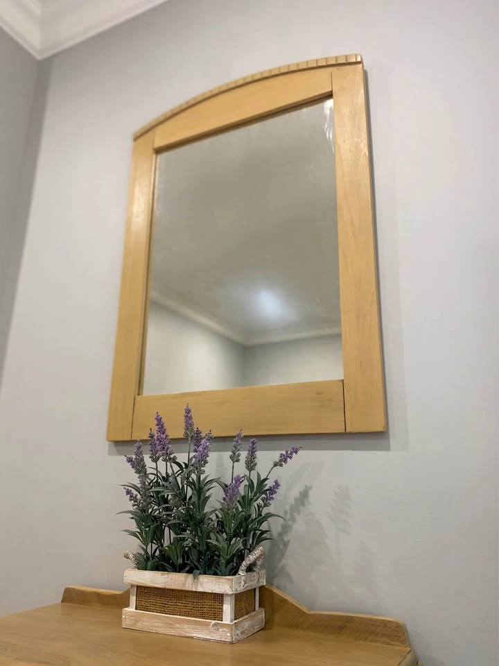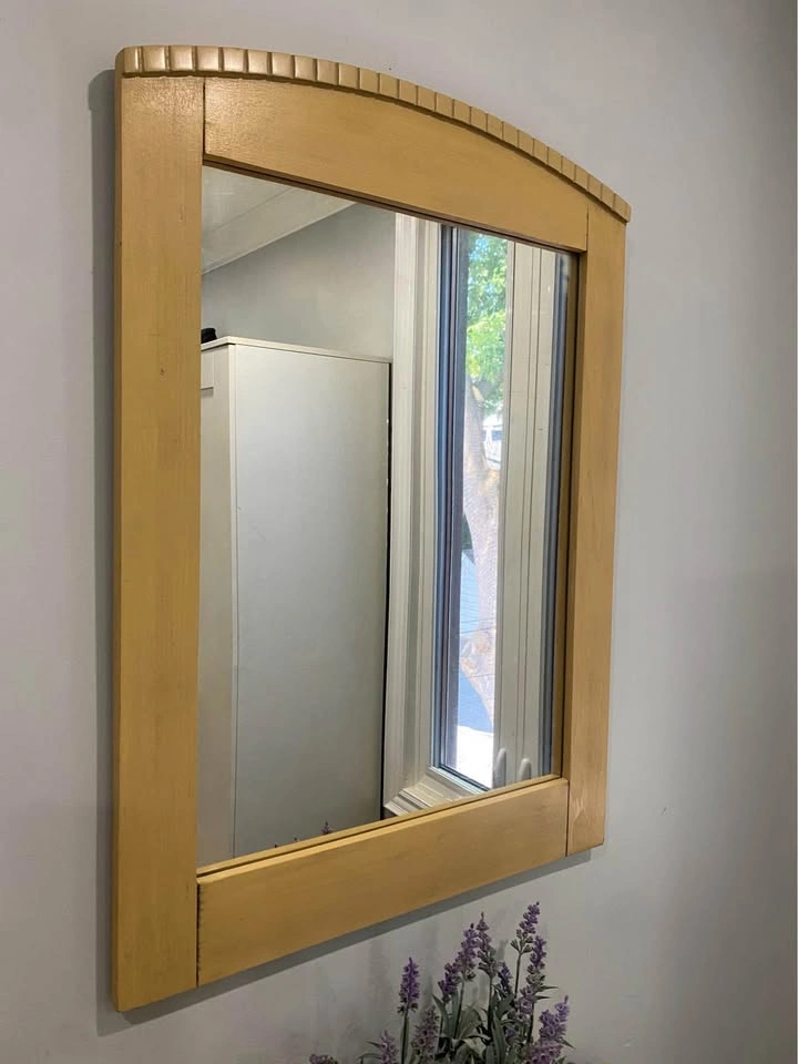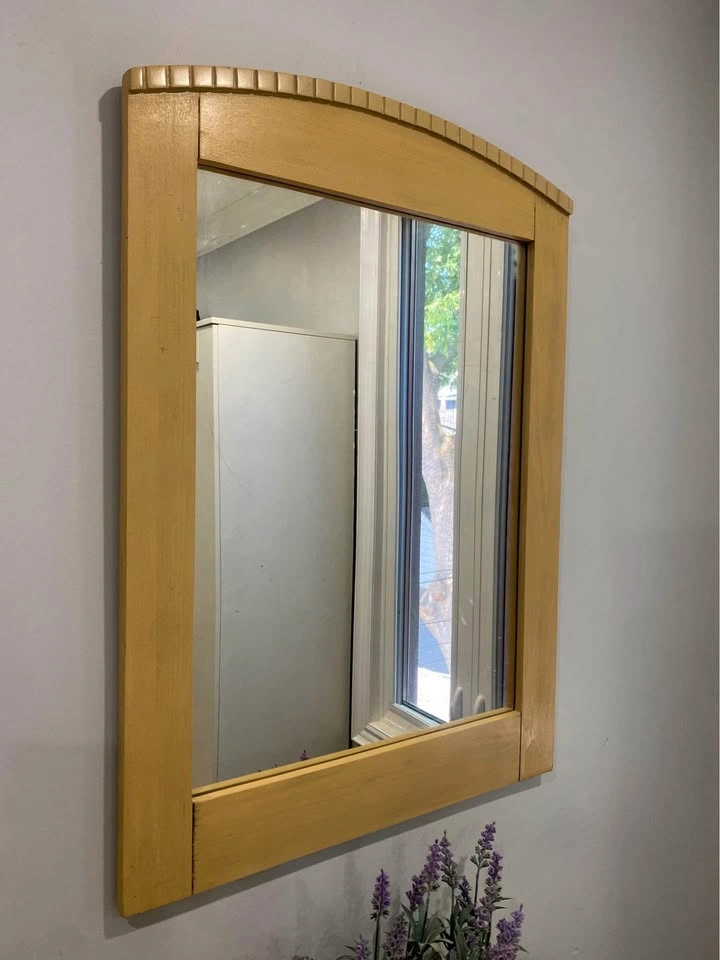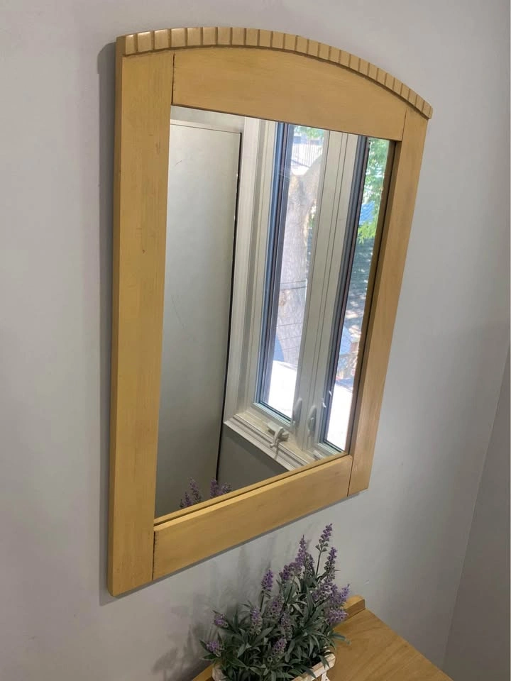 Beautiful solid wood mirror. Dimensions: Width - 24 inches, Height - 33 1/2 inches. Pick up is Jones and Gerrard.