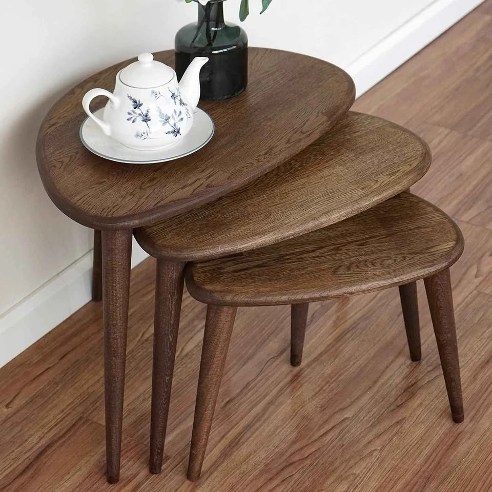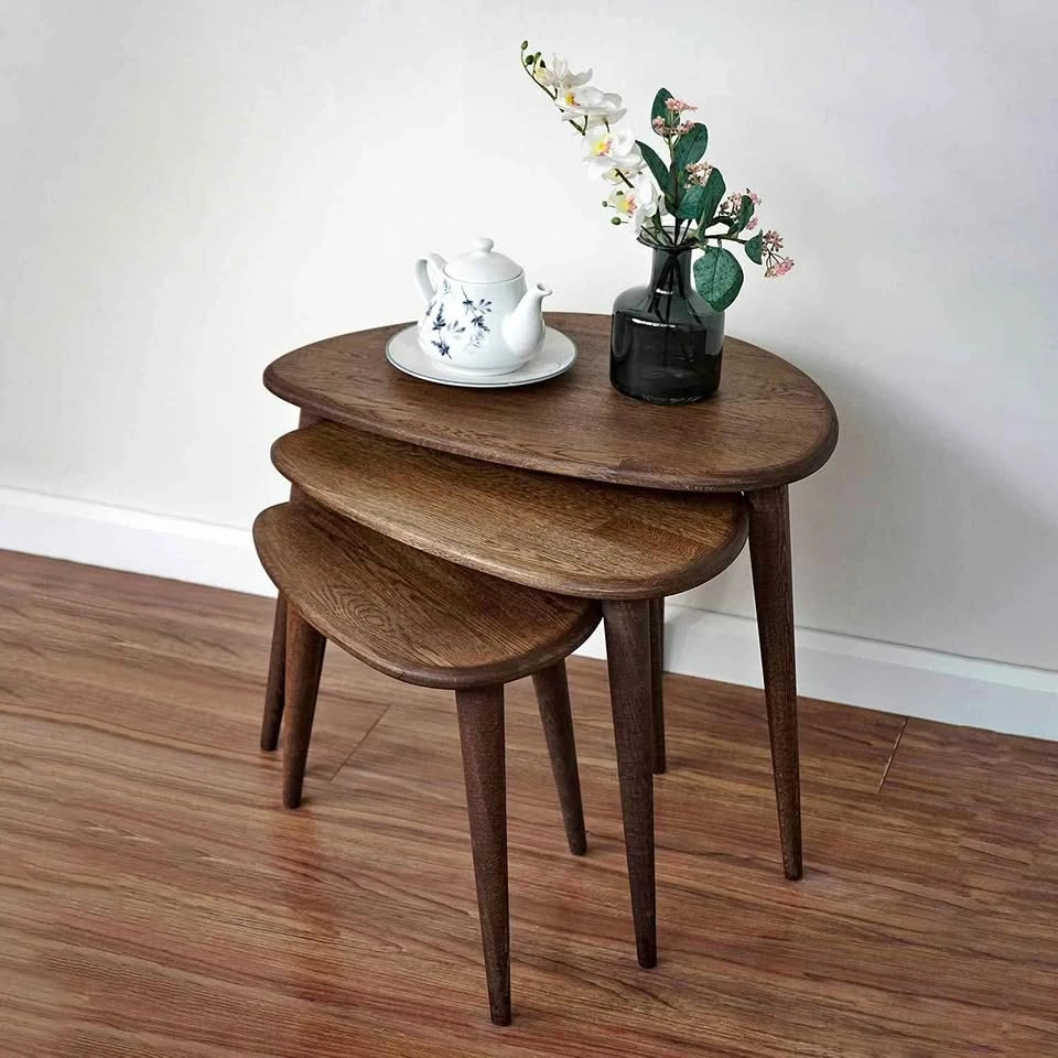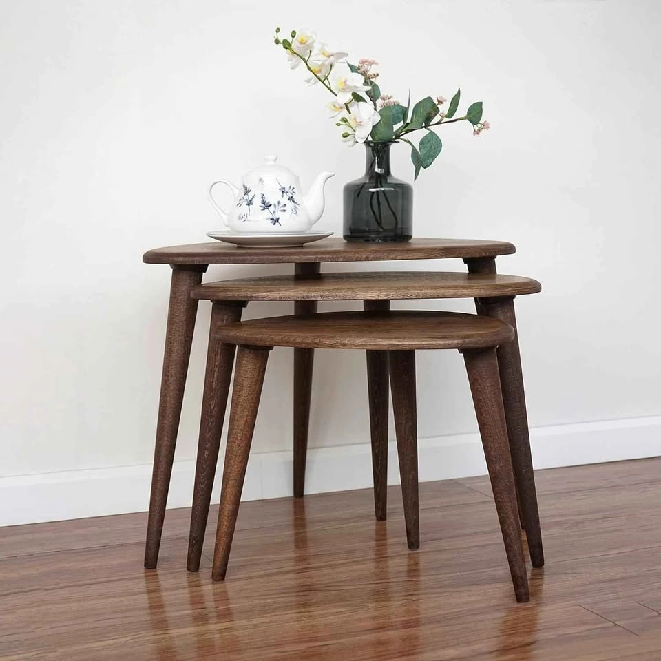 Solid Wood Nesting Table Set of 3 - Oak Mid Century NEW