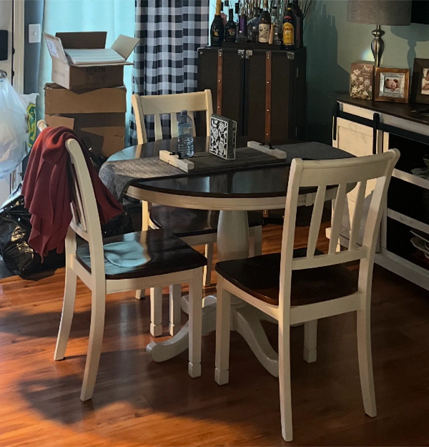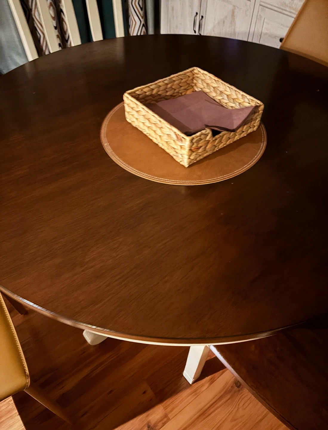 119Selling a round dining table in good condition. Perfect for small spaces or cozy dining areas. It has a classic design that would fit well in any home. Comes with 4 Chairs. Table has a dark wood top and white base and chairs are white with dark wood seat. Table has been disassembled for ease of transport. Asking $425 OBO. Pick up in AIRDRIE