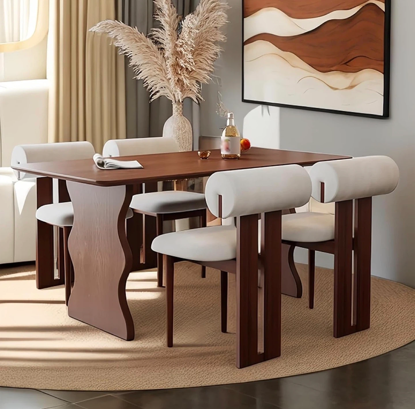 Show allSolid Wood & White Bouclé Dining Chairs - Set of 2