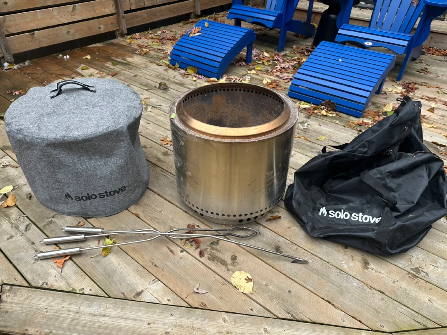 44Selling a Solo Stove Bonfire fire pit. Comes with the stand, grey cover, black carrying bag, and angled poker and grabber tools. https://www.solostove.com/us/en-us/p/bonfire-fire-pit-and-stand-bundle?sku=SSBON-SD-2.0
