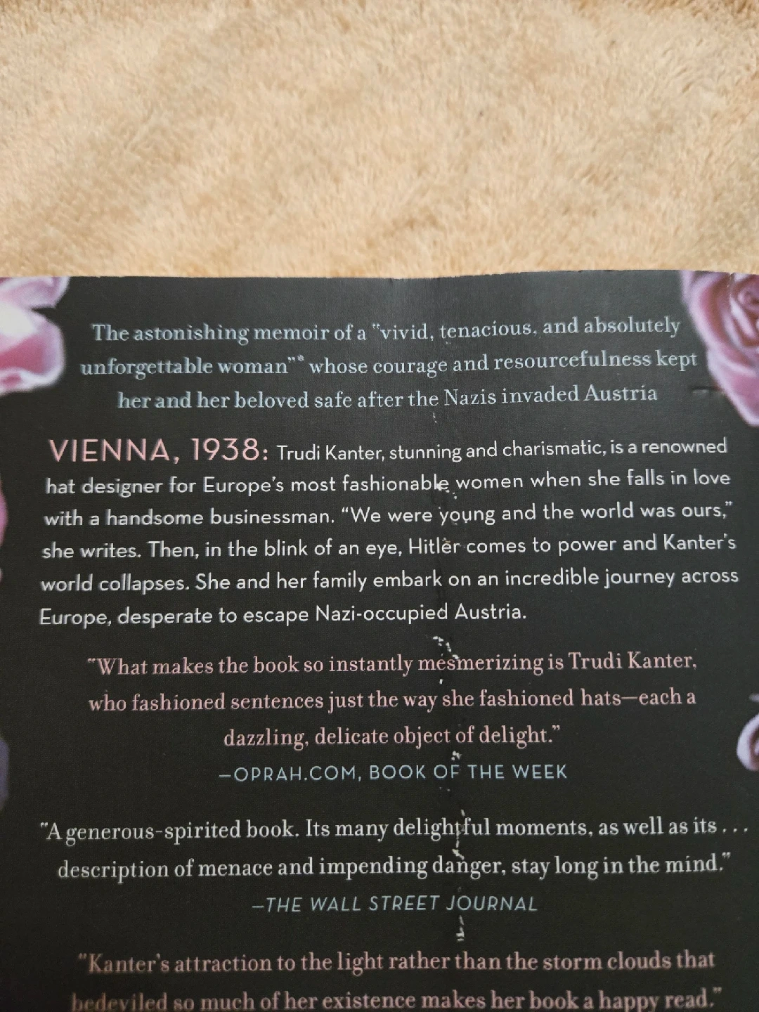 10Selling the book "Some Girls, Some Hats and Hitler: A True Love Story" by Trudi Kanter. It's a memoir about a renowned hat designer in Vienna, 1938, whose world collapses when Hitler comes to power. It's a story of courage and resourcefulness during a difficult time