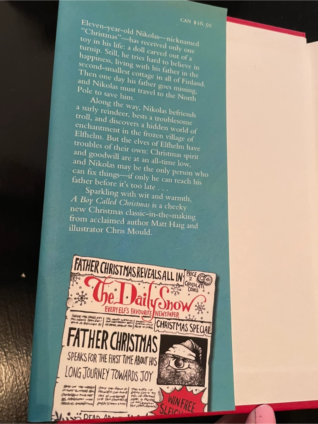 A Boy Called Christmas hardcover book by Matt Haig, with illustrations by Chris Mould. This children's fantasy novel tells the story of an eleven-year-old boy named Nikolas on a magical quest. It's a whimsical and heartwarming Christmas classic for readers of all ages.
