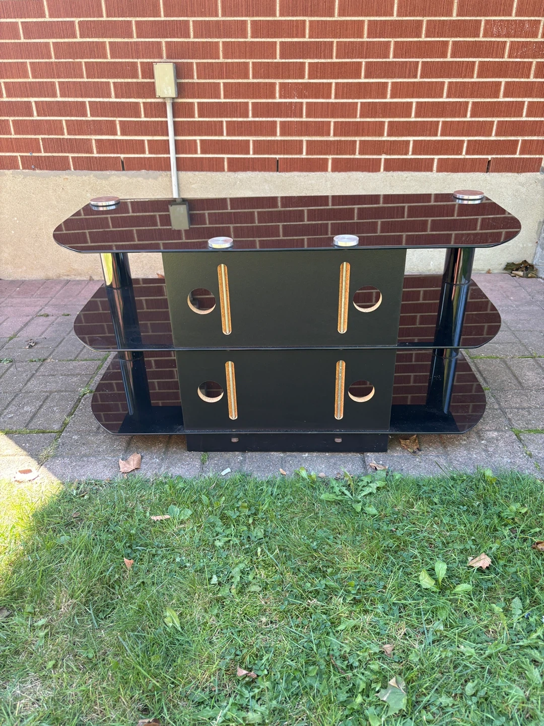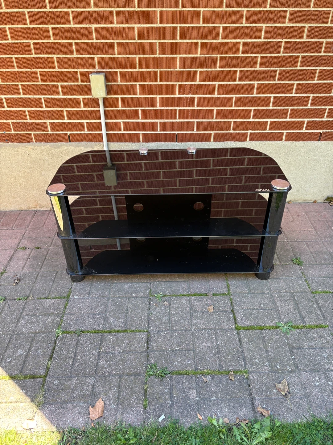 Looking to sell my black glass TV stand by Sonax! It's in great shape and would look great in any living room. It has three shelves to store your consoles and accessories. Feel free to message me if you're interested!