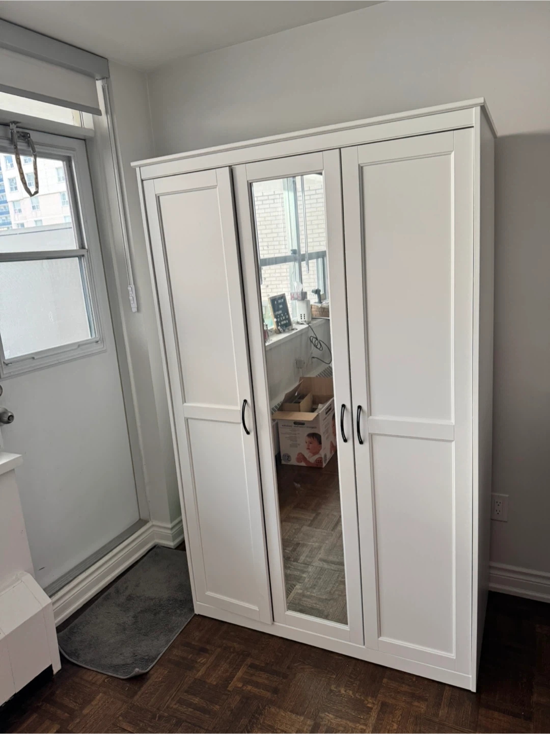 60Selling a wardrobe with mirror doors. It's white and in good condition. Perfect for extra storage! It’s a pet free, smoke free home. Used like new and have not used much it has been empty for most bit.