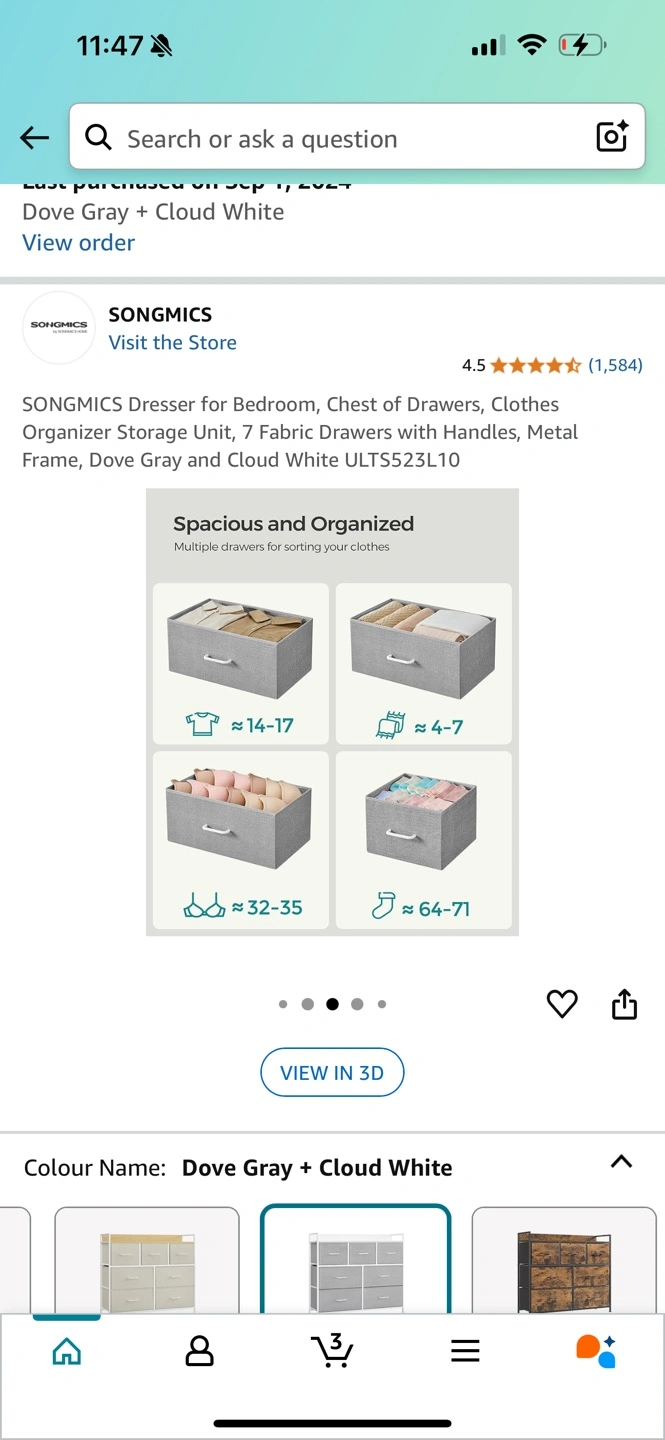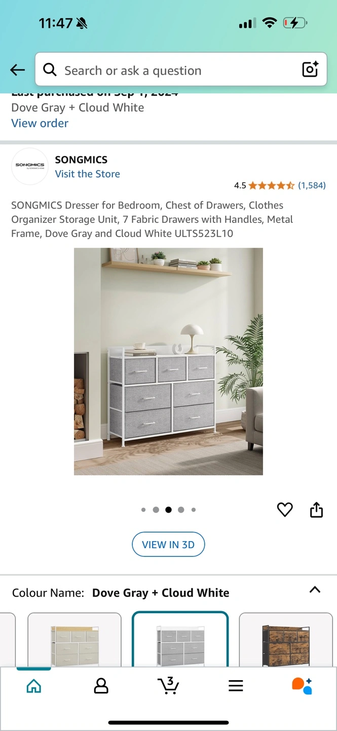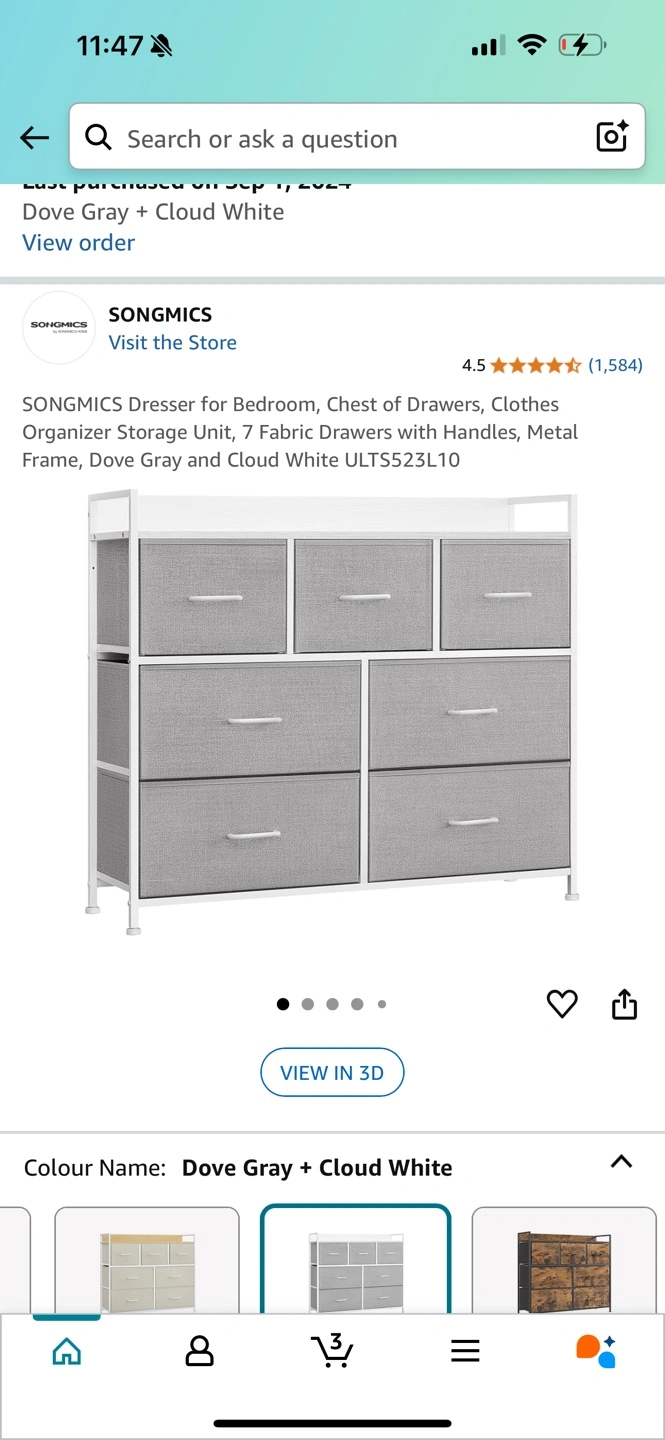 Seven-drawer fabric dresser, metal frame. Dove gray and cloud white. Great for bedroom storage. Brand new condition and I can dismantle it for you so it’s easy to carry. Need gone asap as I am moving Here is the link I used to purchase: https://a.co/d/9IFy2Wi