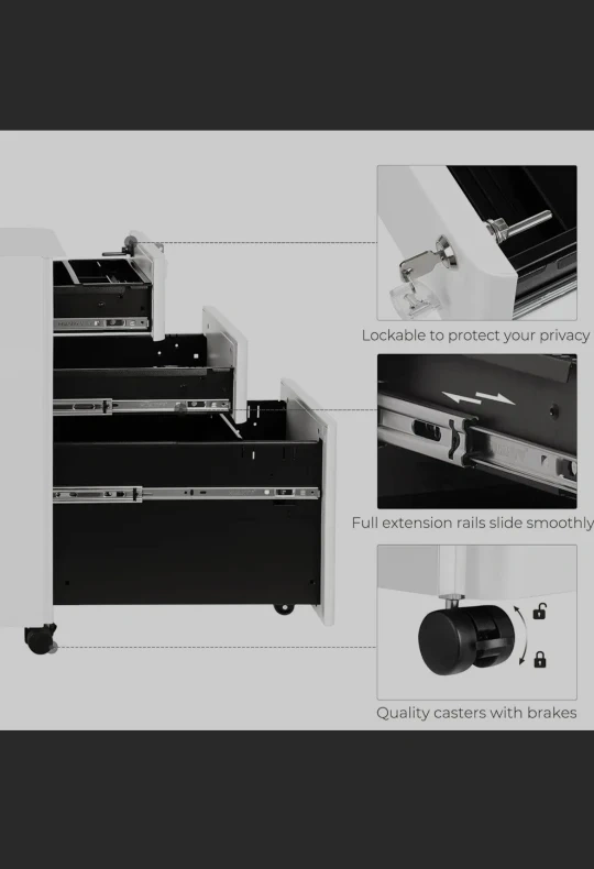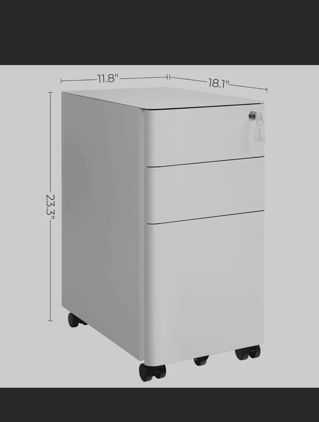 10Selling a brand new SONGMICS filing cabinet! It's still in its original packaging, never been opened. This cabinet features three drawers, lockable to protect your privacy, and quality casters with brakes. Full extension rails ensure smooth drawer movement. Dimensions are 11.8" x 18.1" x 23.3".