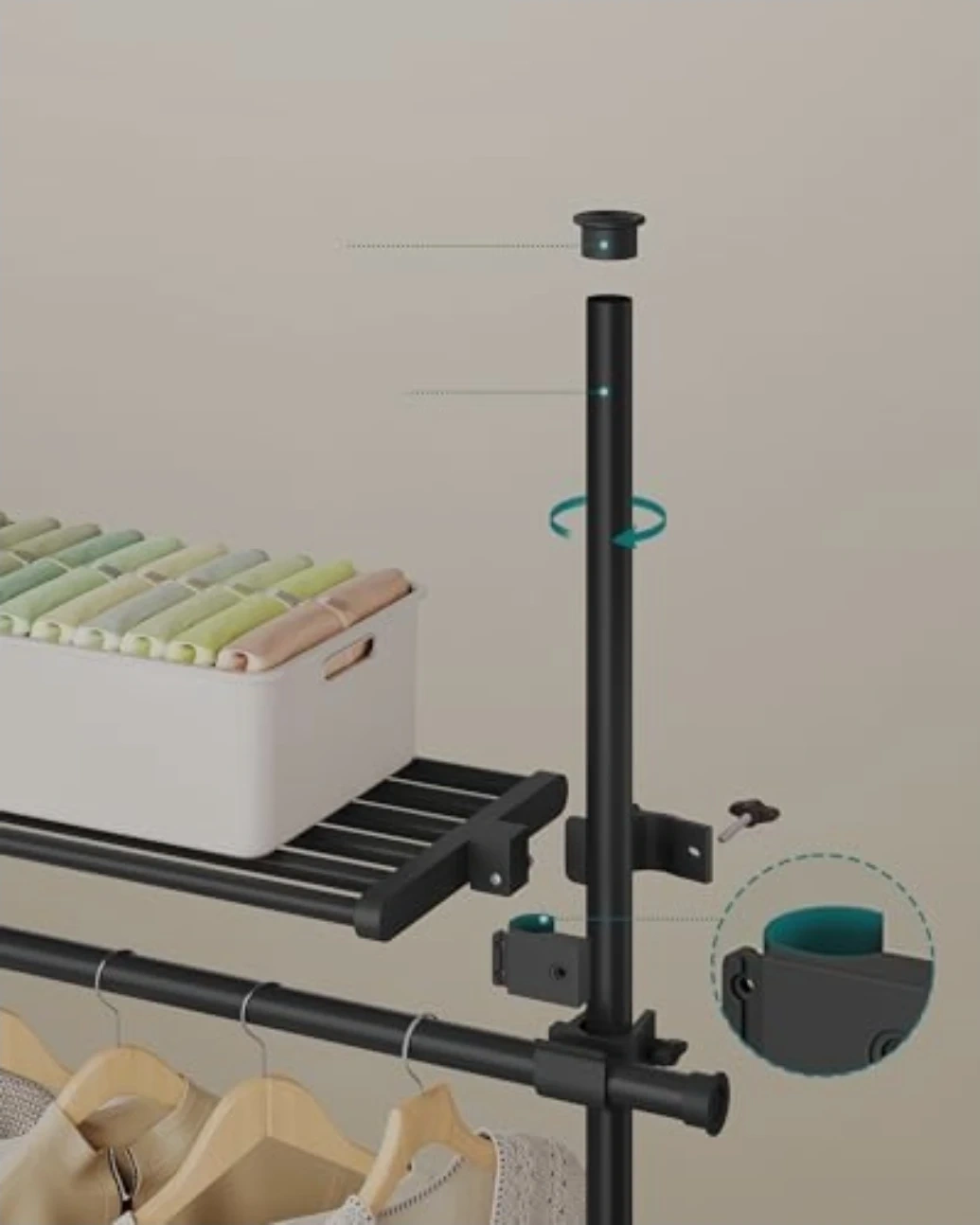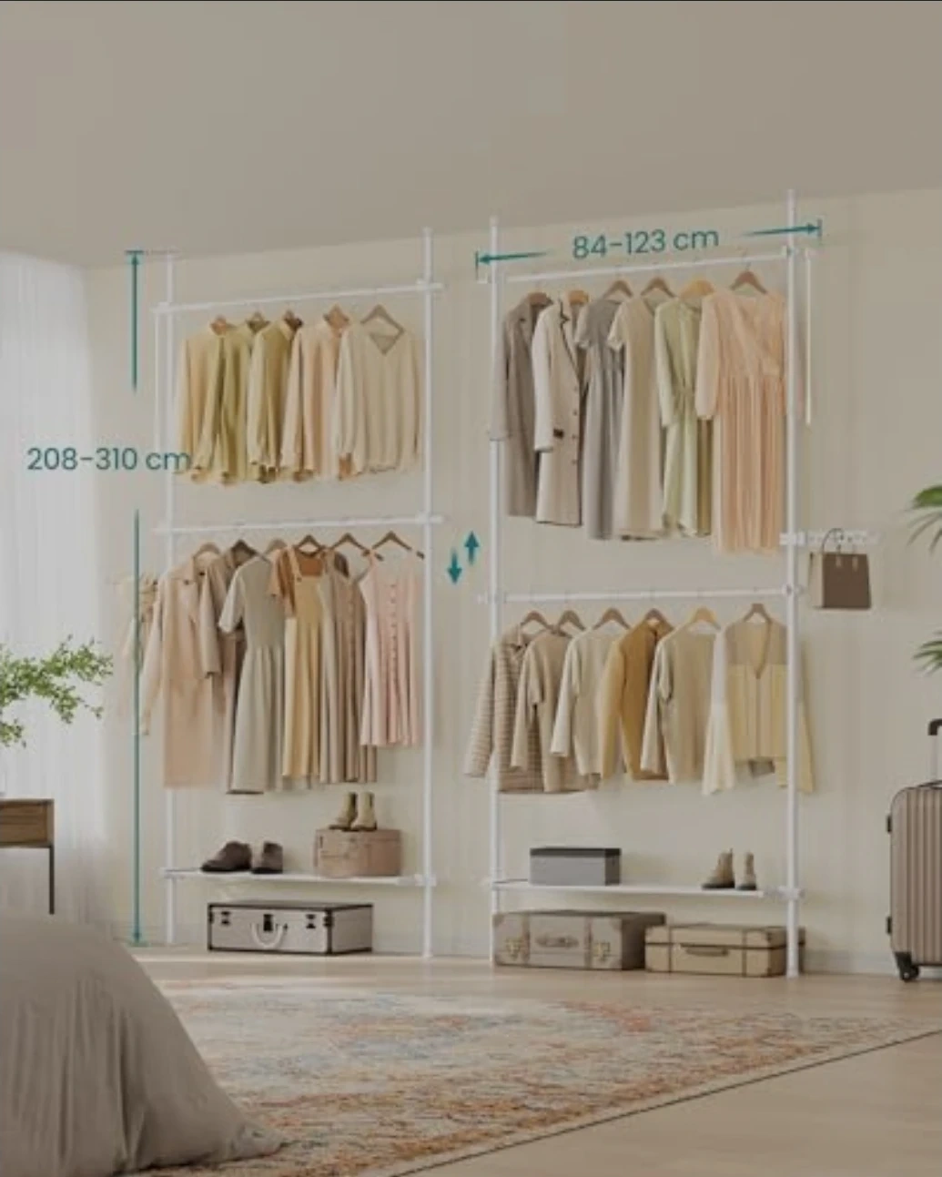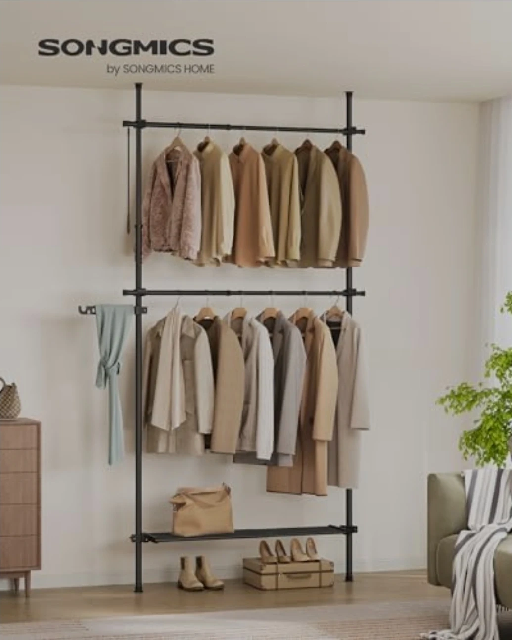 10This SONGMICS garment rack is perfect for adding extra hanging space! It's adjustable in height from 208 cm to 310 cm, and the width can be adjusted from 84 cm to 123 cm. The rack can hold up to 47.5 kg. Great for organizing clothes and keeping them wrinkle-free