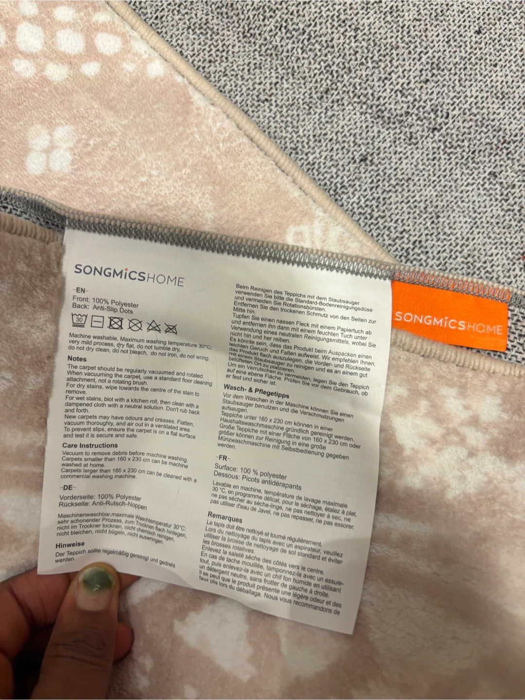 206Selling a SONGMICS HOME rug in great condition! It’s made of 100% polyester and has anti-slip dots on the back. It's a lovely rug for any room. Available for delivery and pick up