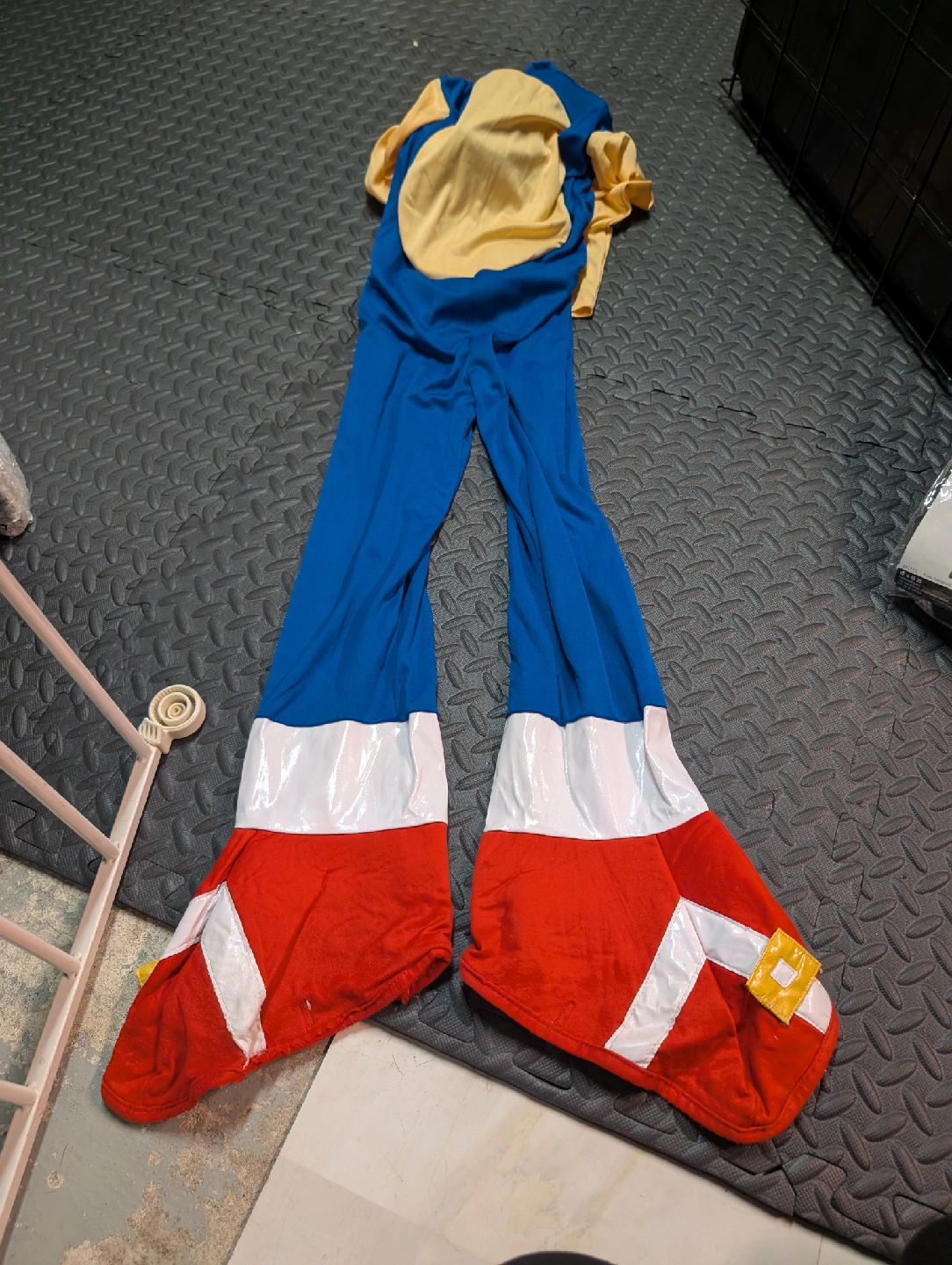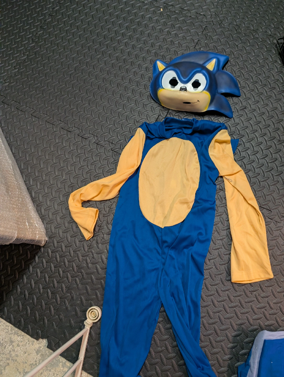 20Selling a gently used Sonic the Hedgehog costume in size medium! It's perfect for dress-up or Halloween. The costume includes the mask and jumpsuit. Made of 100% polyester.
