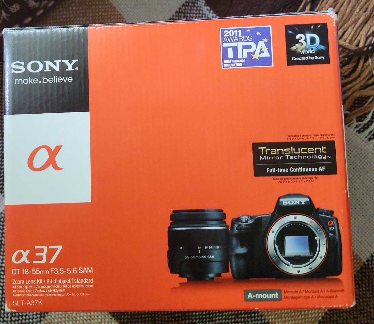 Selling a Sony Alpha a37 DT 18-55mm F3.5-5.6 SAM Zoom Lens Kit. It comes with Translucent Mirror Technology and Full-time Continuous AF. It also has an A-mount.