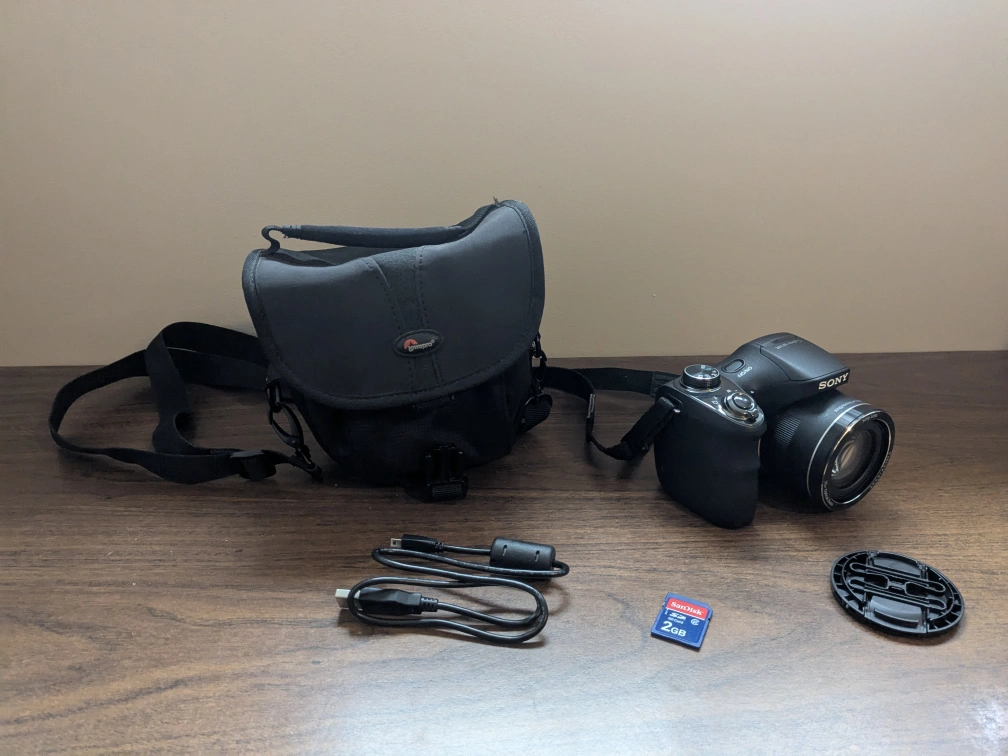 20Selling a Sony Cyber-shot DSC-H300 camera in great shape! It comes with a Lowepro bag, USB cable, a lens cap, and a 2GB Sandisk SD card. Runs on 4 AA batteries (not included). https://www.sony.com/electronics/support/compact-cameras-dsc-h-series/dsc-h300/specifications