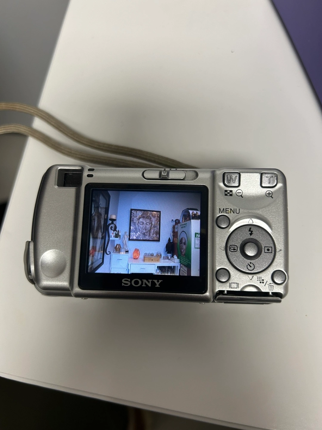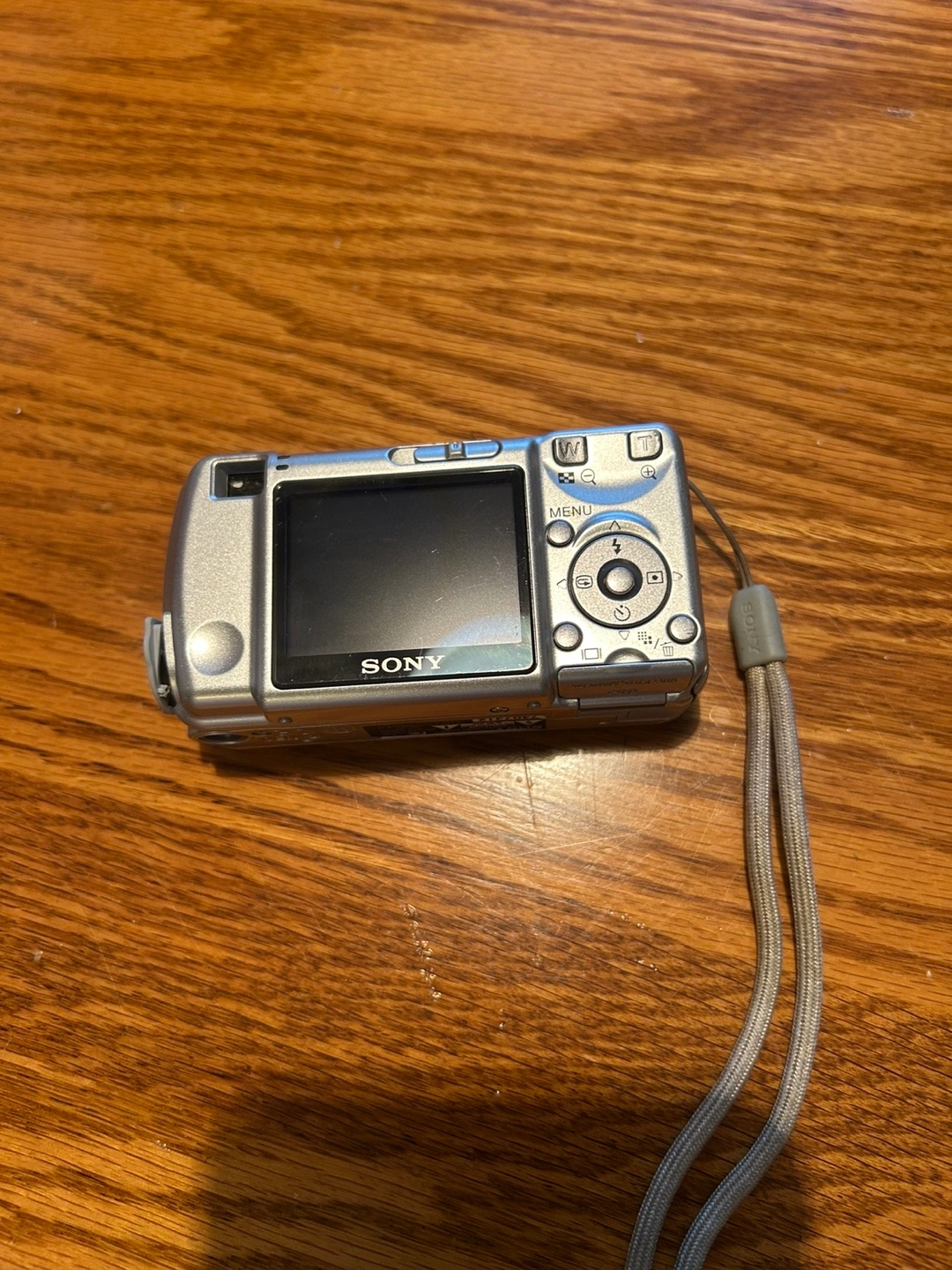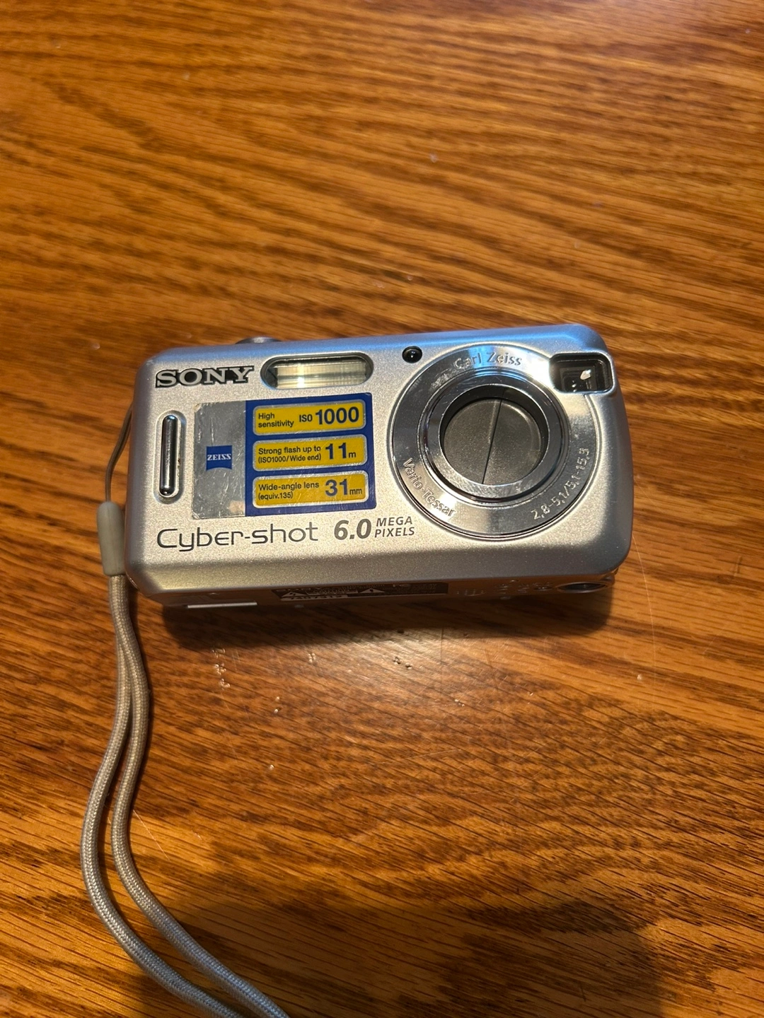 Compact digital camera. Silver colour. Includes wrist strap & case. Carl Zeiss lens. 6.0 megapixels. Great for casual photography. Comes with a 2GB memory card.