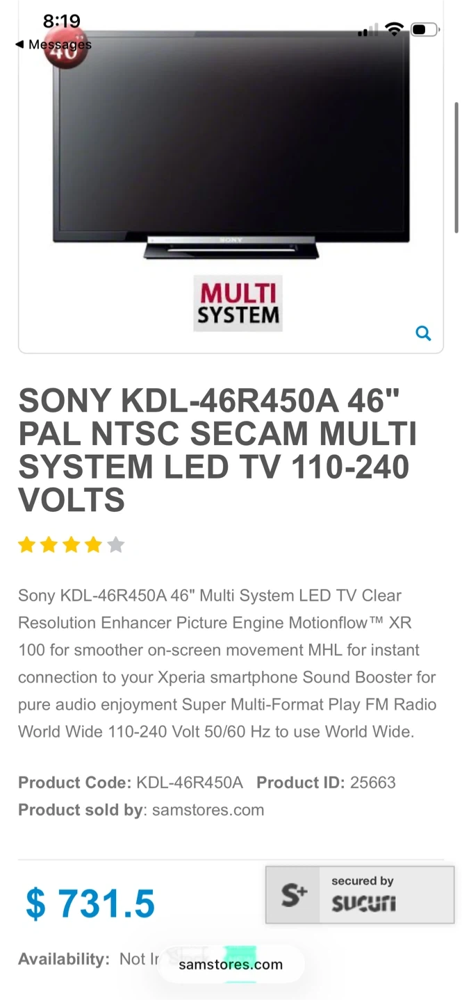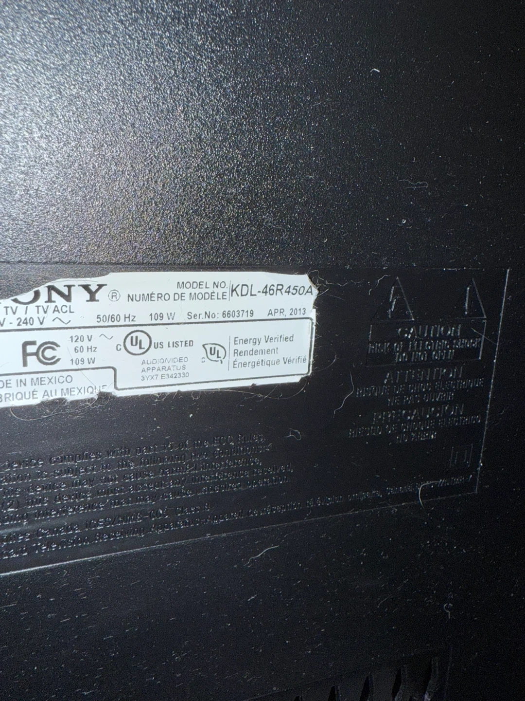 15Selling a Sony 46-inch LED TV, model KDL-46R450A. It's a multi-system TV that supports 110-240 Volts. Great for enjoying your favourite shows and movies!