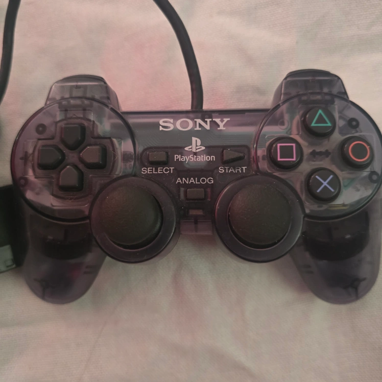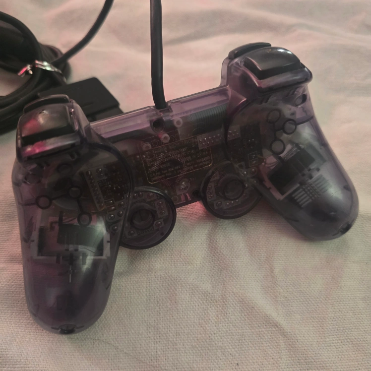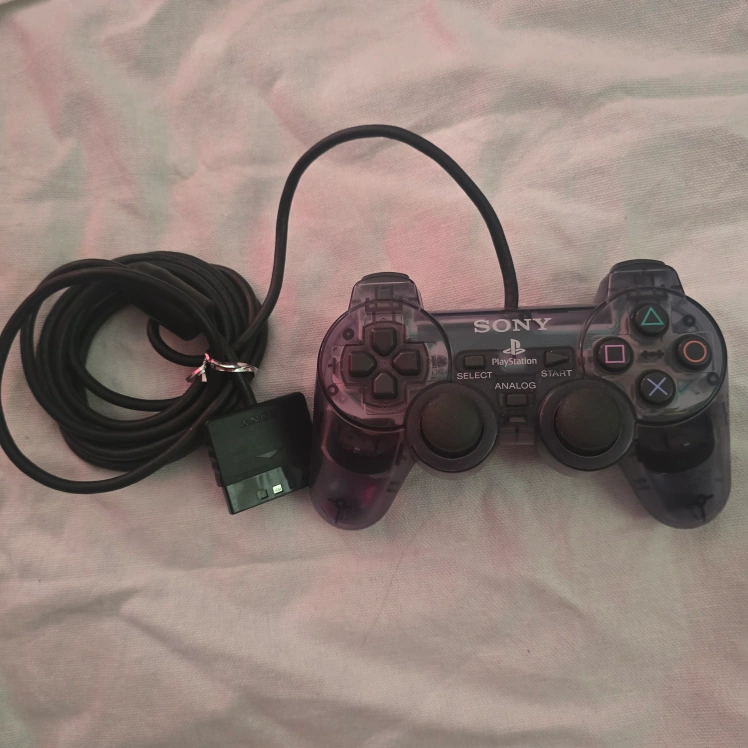 60Selling a Sony PlayStation 2 controller in a cool clear smoke grey colour! It's in good shape and ready for some gaming action on your PS2