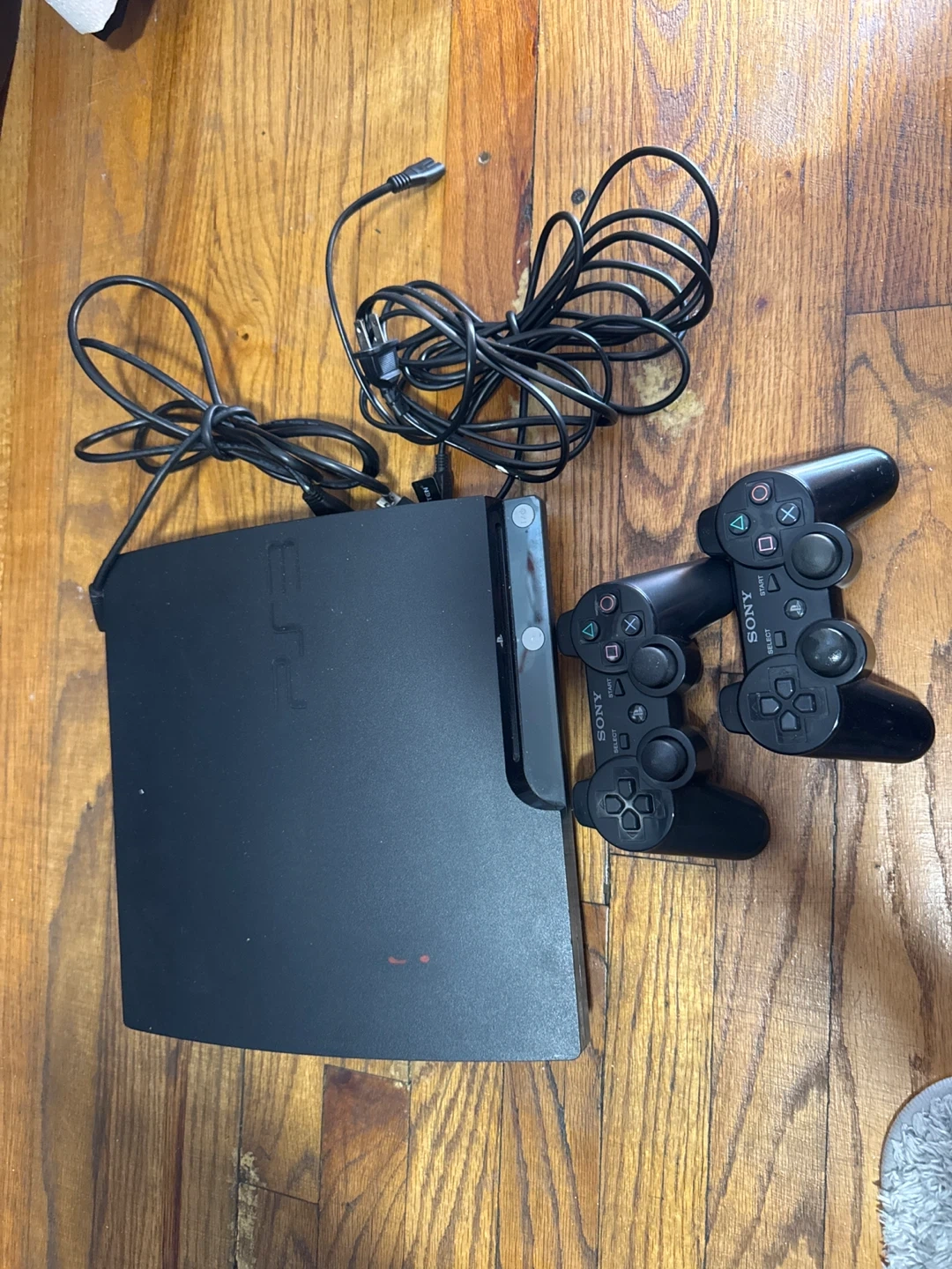 Selling a used Sony PlayStation 3 (PS3) in black. It comes with one controller and the necessary power cable. Great for playing classic PS3 games!
