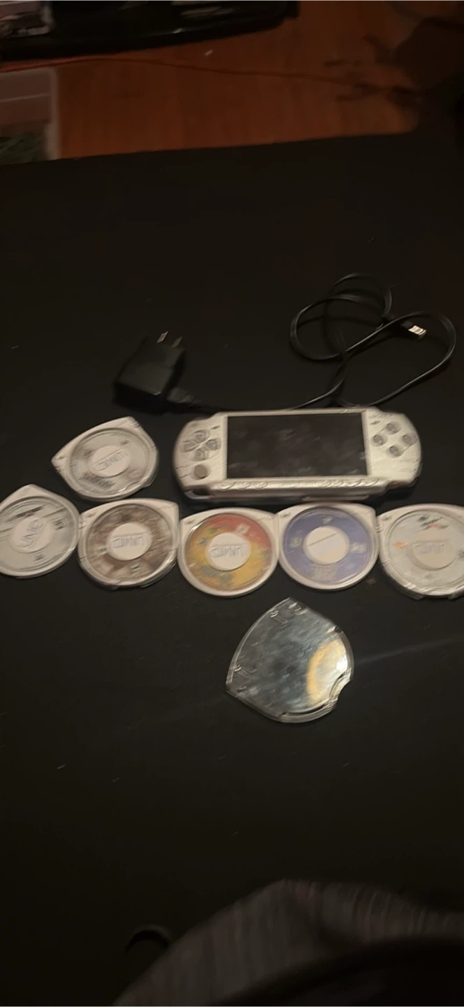 10silver Sony PSP 1000,with a charger games no batt msg for info
